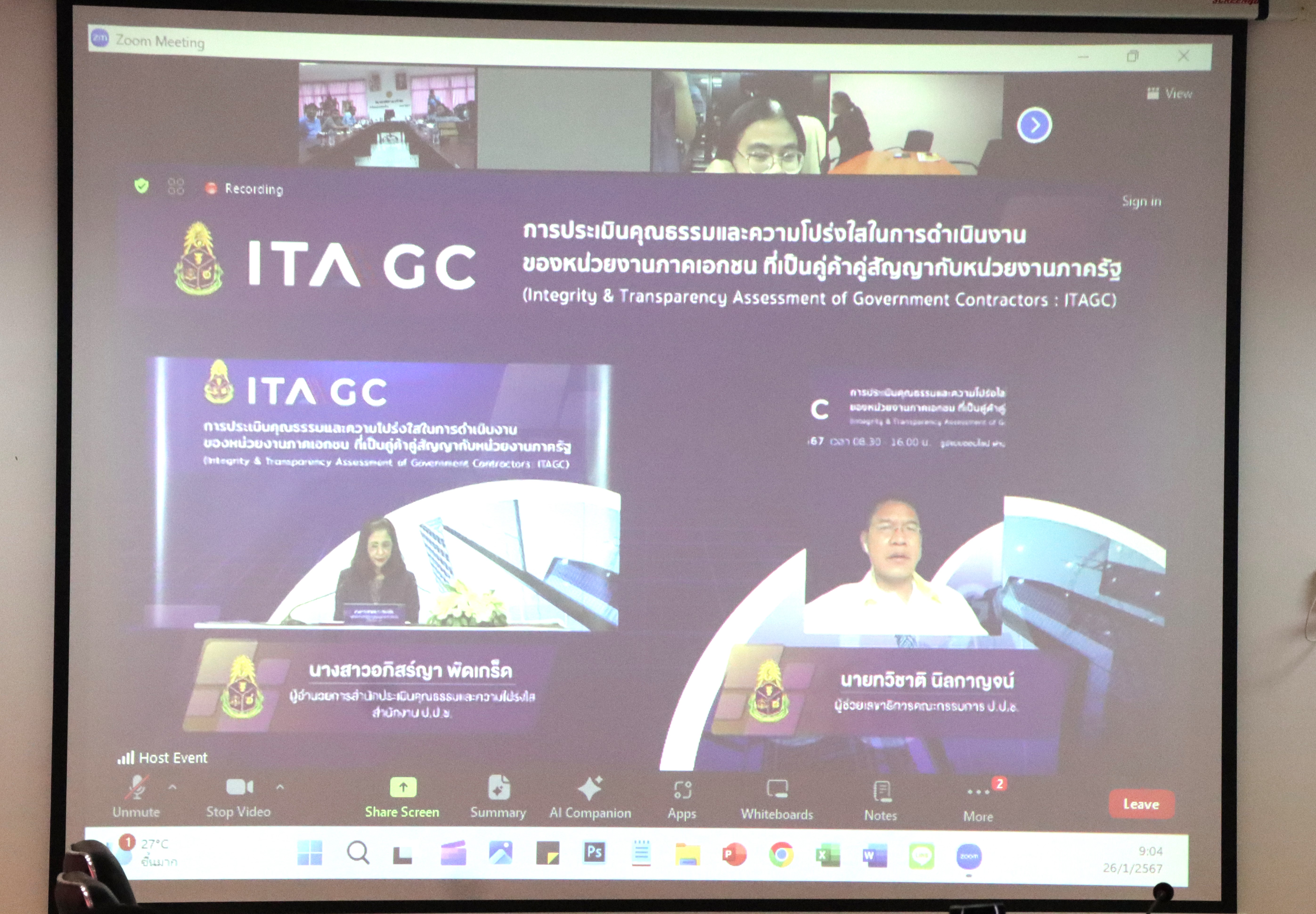 ร่วมกิจกรรมการอบรม “กรอบการประเมิน ITAGC 2024” ประจำปีงบประมาณ พ.ศ.2567 ในรูปแบบออนไลน์ ผ่านระบบ Zoom Cloud Meeting