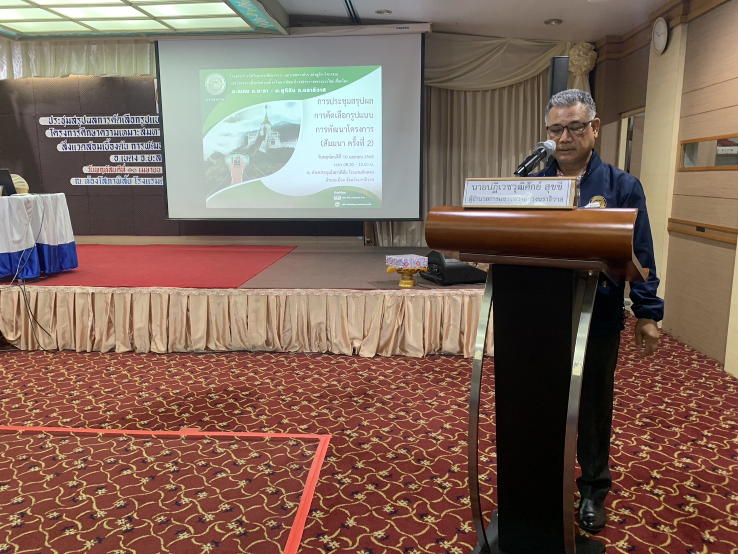 แขวงฯนราธิวาส ร่วมประชุมสรุปผลการคัดเลือกรูปแบบการพัฒนาโครงการ (สัมมนา ครั้งที่ 2) โครงการศึกษาความเหมาะสมทางด้านเศรษฐกิจ วิศวกรรม และผลกระทบด้านสิ่งแวดล้อมเบื้องต้น การพัฒนาโครงข่ายทางหลวงแนวใหม่เชื่อมโยง อ.เบตง จ.ยะลา - อ.สุคิริน จ.นราธิวาส