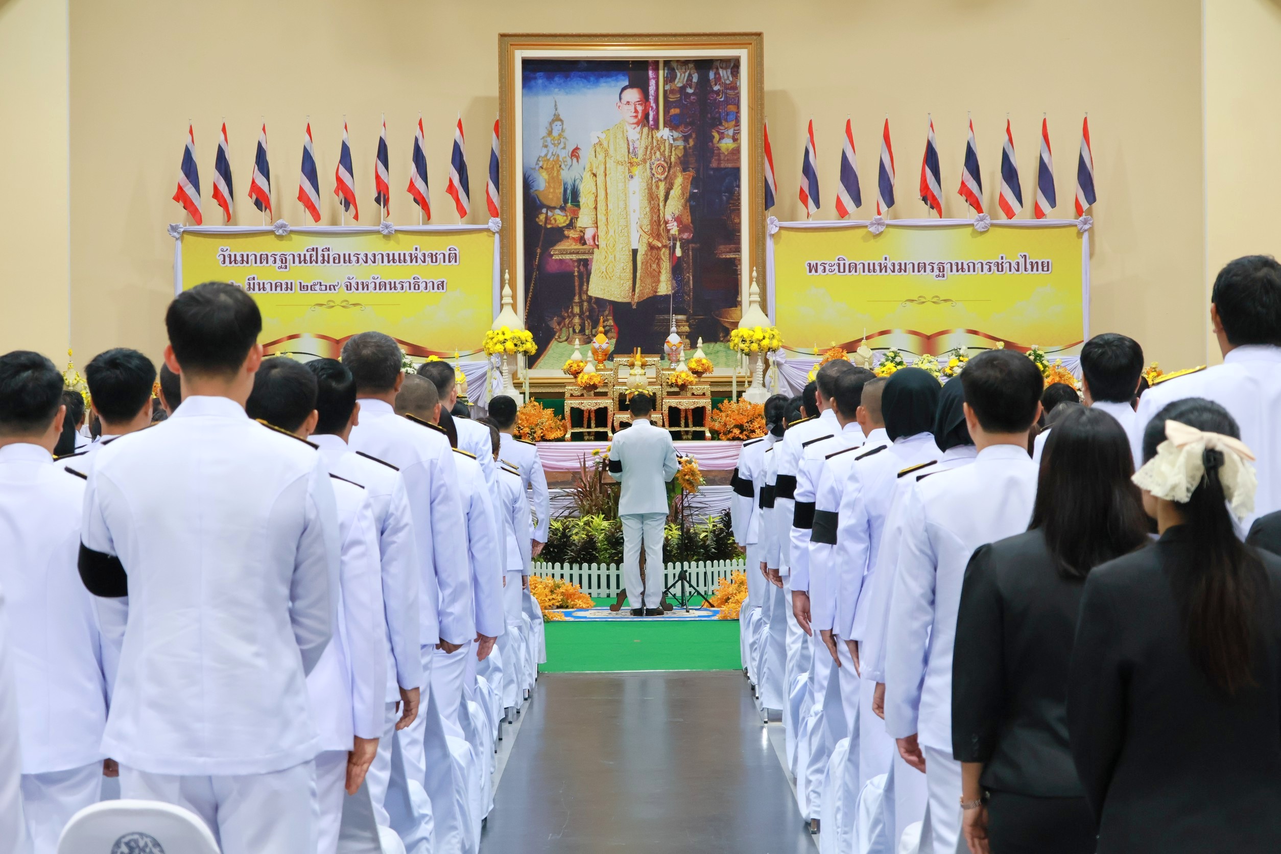 นายสมนึก เศียรอุ่น ผู้อำนวยการแขวงทางหลวงนราธิวาส มอบหมายให้นางอรัญญา เพ็ชรพูล รองผู้อำนวยการแขวงทางหลวงนราธิวาส ฝ่ายบริหาร และนางสาวซูเดีย ดารามั่น พนักงานบริการ ร่วมพิธีถวายราชสักการะแด่พระบาทสมเด็จพระบรมชนกาธิเบศร มหาภูมิพลอดุลยเดชมหาราชบรมนาถบพิตร "พระบิดาแห่งมาตรฐานการช่างไทย" ประจำปี 2569 ซึ่งเป็นวันมาตรฐานฝีมือแรงงานแห่งชาติ เพื่อรำลึกถึงพระมหากรุณาธิคุณที่ทรงให้ความสำคัญกับการพัฒนาทักษะช่างไทยให้ได้มาตรฐานสากล ในการนี้มีนายบุญช่วย หอมยามเย็น ผู้ว่าราชการจังหวัดนราธิวาส เป็นประธานในพิธี พร้อมด้วยหัวหน้าส่วนราชการ ข้าราชการ และเจ้าหน้าที่ เข้าร่วมพิธีดังกล่าว