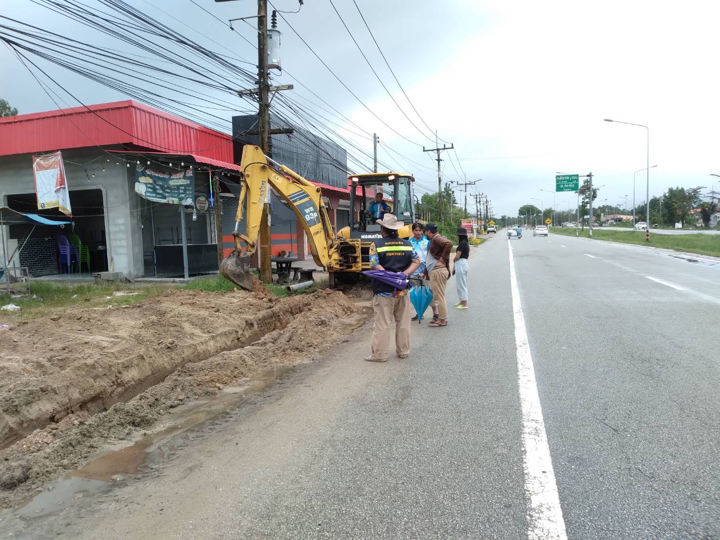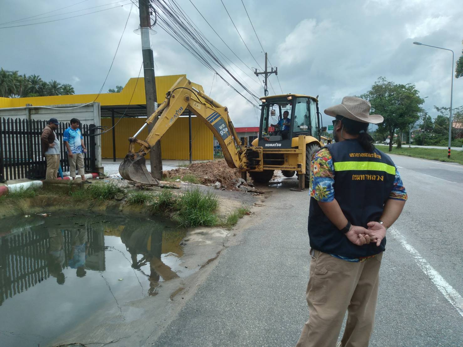 นายสมัคร เลือดวงหัดผู้อำนวยการแขวงทางหลวงนราธิวาส มอบหมายให้ นายเจษฎา สุวรรณรัตน์ หัวหน้าหมวดทางหลวงยี่งอ และเจ้าหน้าที่แขวงทางหลวงนราธิวาส ร่วมกับเทศบาลต้นไทร ดำเนินการแก้ปัญหาน้ำท่วมผิวจราจร บริเวณ หน้าปั๊ม ปตท.ต้นไทร ทางหลวงหมายเลข 00420301 ตอน กอตอ - ปูต๊ะ ระหว่าง กม.161+200 - กม.161+400 ด้าน SB