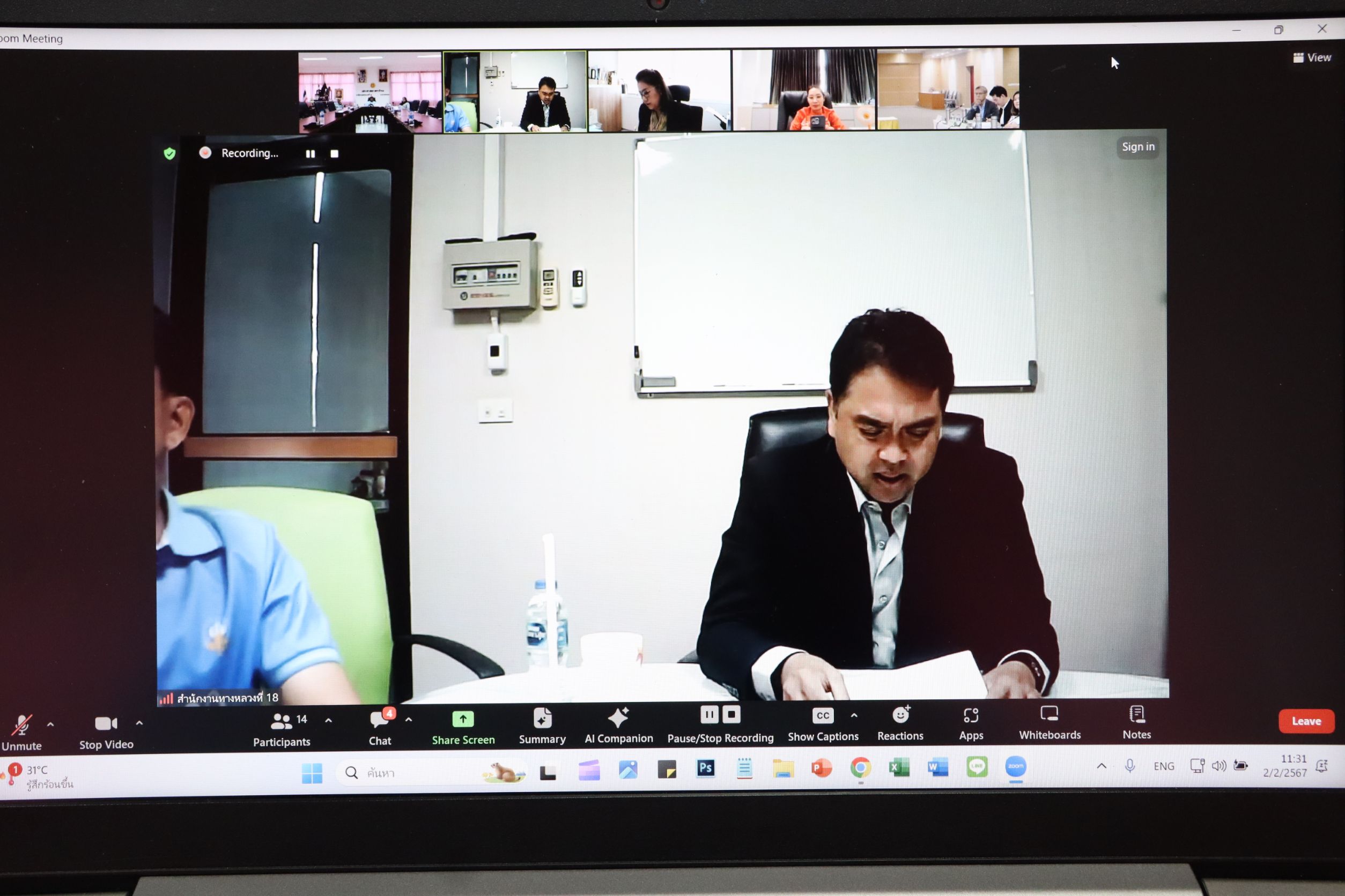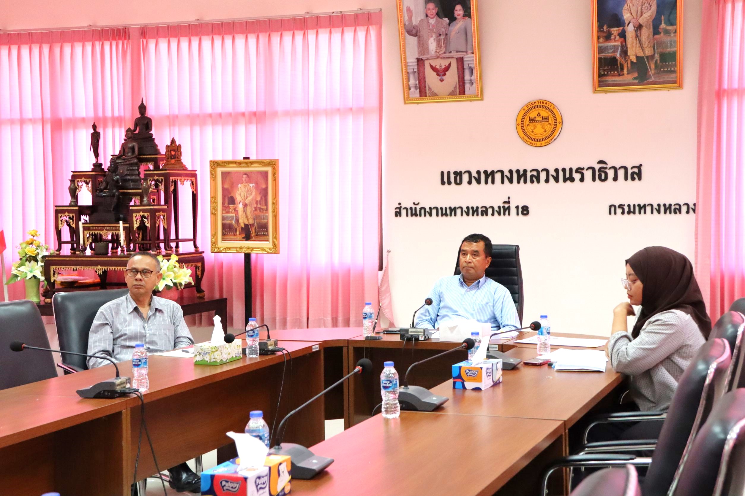 นายสมัคร เลือดวงหัด ผู้อำนวยการแขวงทางหลวงนราธิวาส พร้อมด้วยนายจำลอง จันสุข รองผู้อำนวยการแขวงทางหลวงนราธิวาส (ฝ่ายปฏิบัติการ) และเจ้าหน้าที่ ร่วมประชุมเพื่อกำหนดหน่วยงานกลางเสนอภาพรวมคำขอรับการสนับสนุนงบกลาง รายการเงินสำรองจ่าย เพื่อกรณีฉุกเฉินหรือจำเป็น ประจำปีงบประมาณ พ.ศ. 2567 และเตรียมความพร้อมในการดำเนินการของหน่วยงานที่เสนอขอรับการสนับสนุนงบกลางฯ ผ่านระบบ Zoom Cloud Meeting ณ ห้องประชุม ชั้น 3 แขวงทางหลวงนราธิวาส โดยได้มอบหมายให้นายธวัชชัย เผนานนท์ รองผู้อำนวยการแขวงทางหลวงนราธิวาส (ฝ่ายวิศวกรรม) เป็นผู้รายงานสรุปภาพรวมของแผนงานงบประมาณ ณ ห้องประชุม ชั้น 2 ศูนย์ราชการจังหวัดชายแดนใต้ จังหวัดยะลา