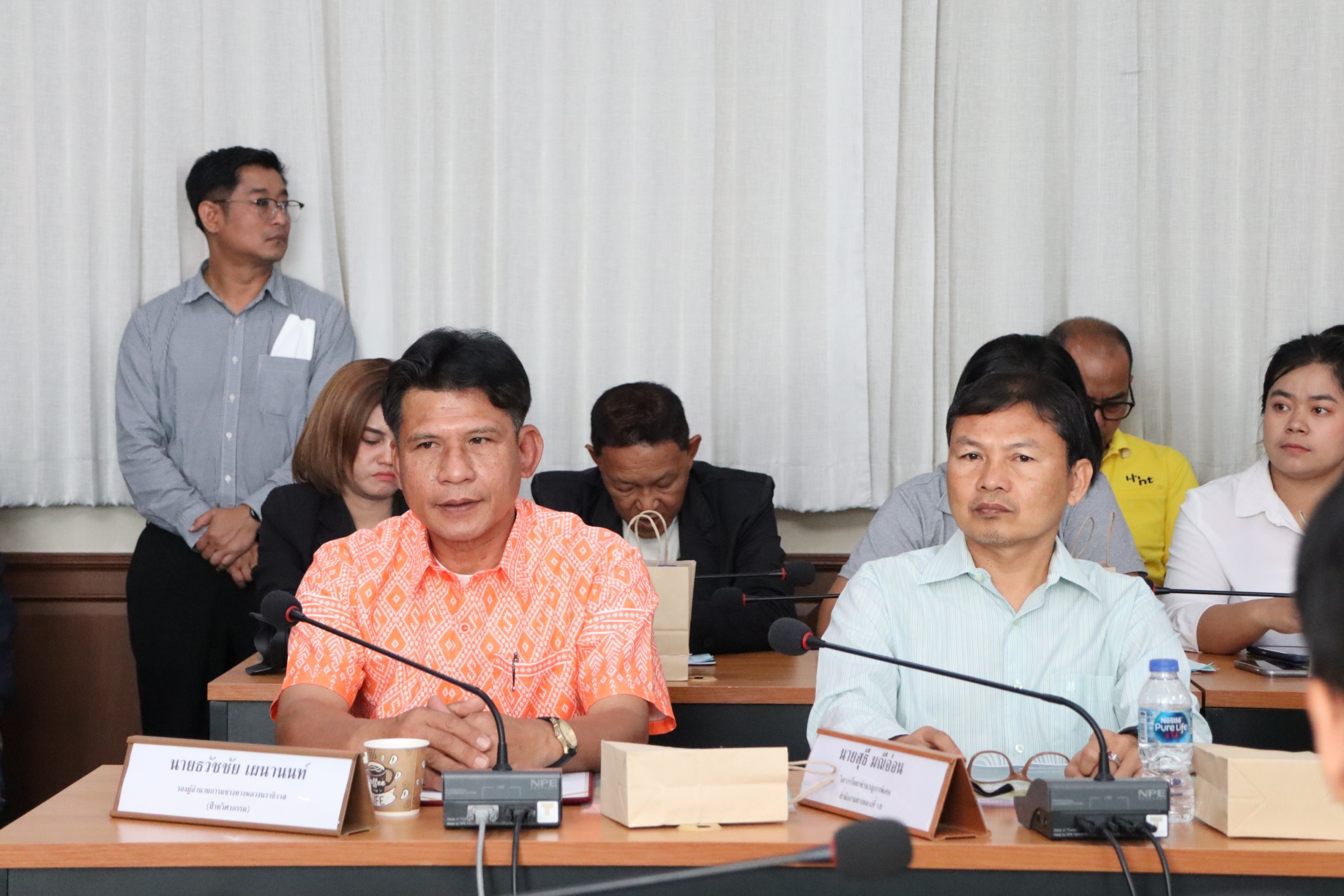 นายจอมปวีร์ จันทร์หิรัญ ผู้อำนวยการสำนักงานทางหลวงที่ 18 รักษาราชการแทน ผู้อำนวยการแขวงทางหลวงนราธิวาส มอบหมายให้นายธวัชชัย เผนานนท์ รองผู้อำนวยการแขวงทางหลวงนราธิวาส ฝ่ายวิศวกรรม นายศุภชาติ คงประเสริฐ หัวหน้าหมวดทางหลวงสุไหงโก-ลก และเจ้าหน้าที่ในสังกัด พร้อมด้วยนายสุธี มณีอ่อน ผู้อำนวยการส่วนควบคุมงานก่อสร้าง สำนักงานทางหลวงที่ 18 ร่วมกับเจ้าหน้าที่สำนักแผนงาน กลุ่มงานสิ่งแวดล้อม กรมทางหลวง เข้าร่วมประชุมเพื่อหารือแนวทางการประเมินผลกระทบสิ่งแวดล้อมให้กลุ่มเป้าหมายที่เกี่ยวข้องได้รับทราบและรับฟังความคิดเห็น ข้อเสนอแนะ และความต้องการของกลุ่มเป้าหมายที่เกี่ยวข้อง เพื่อนำไปพิจารณาประกอบการศึกษา โครงการสะพานคู่ขนานข้ามแม่น้ำโก-ลก ณ ห้องประชุมปรีชาราชสีห์ ชั้น 2 ที่ว่าการอำเภอสุไหงโก-ลก อ.สุไหงโก-ลก จ.นราธิวาส โดยมีนายวีรพัฒน์ บุณฑริก รองผู้ว่าราชการจังหวัดนราธิวาส เป็นประธานการประชุม