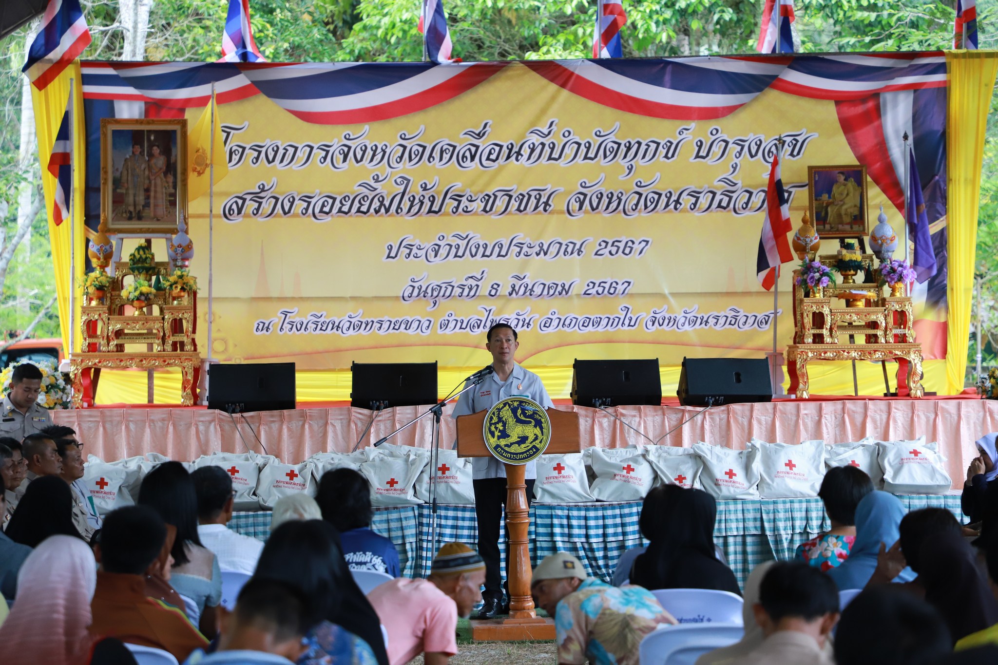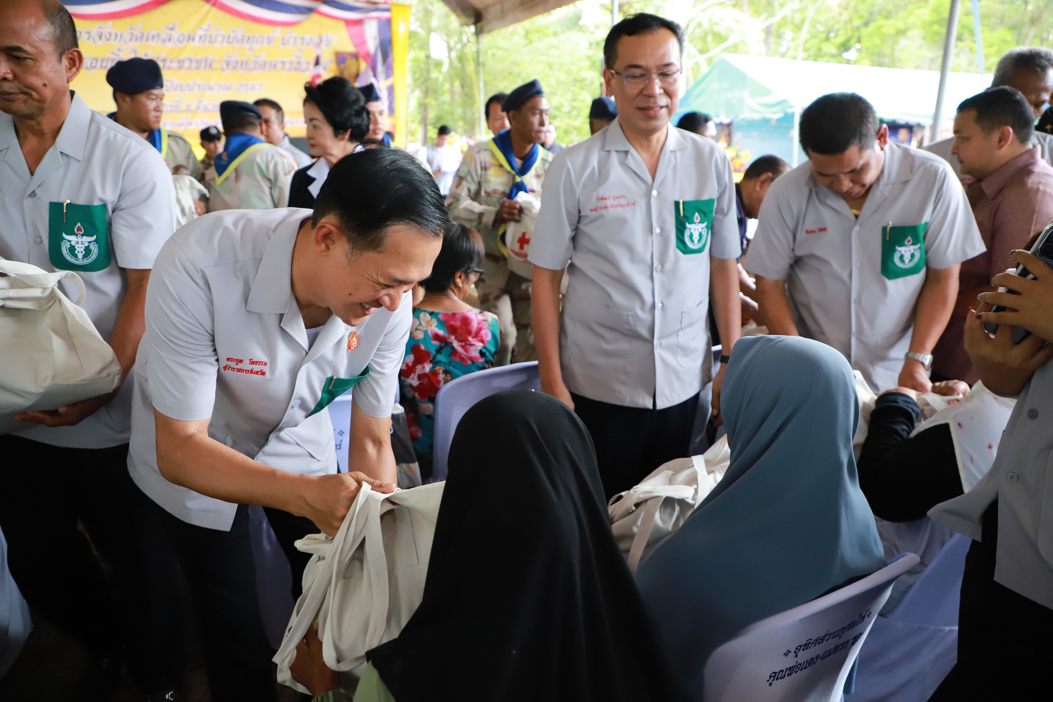 นายจอมปวีร์ จันทร์หิรัญ ผู้อำนวยการสำนักงานทางหลวงที่ 18 รักษาราชการแทน ผู้อำนวยการแขวงทางหลวงนราธิวาส มอบหมายให้นายนิรันดร์ โสตติมานนท์ รักษาการในตำแหน่ง หัวหน้าหมวดทางหลวงตากใบ เข้าร่วมโครงการจังหวัดเคลื่อนที่ "บำบัดทุกข์ บำรุงสุข สร้างรอยยิ้มให้ประชาชน" ประจำปี 2567 ณ โรงเรียนวัดทรายขาว หมู่ที่ 2 ตำบลไพรวัน อำเภอตากใบ จังหวัดนราธิวาส โดยมีว่าที่ร้อยตรี ตระกูล โทธรรม ผู้ว่าราชการจังหวัดนราธิวาส เป็นประธานเปิดโครงการจังหวัดเคลื่อนที่ "บำบัดทุกข์ บำรุงสุข สร้างรอยยิ้มให้ประชาชน" ประจำปี 2567 พร้อมด้วยหัวหน้าส่วนราชการรัฐวิสาหกิจ เอกชนและประชาชนในพื้นที่เข้าร่วม