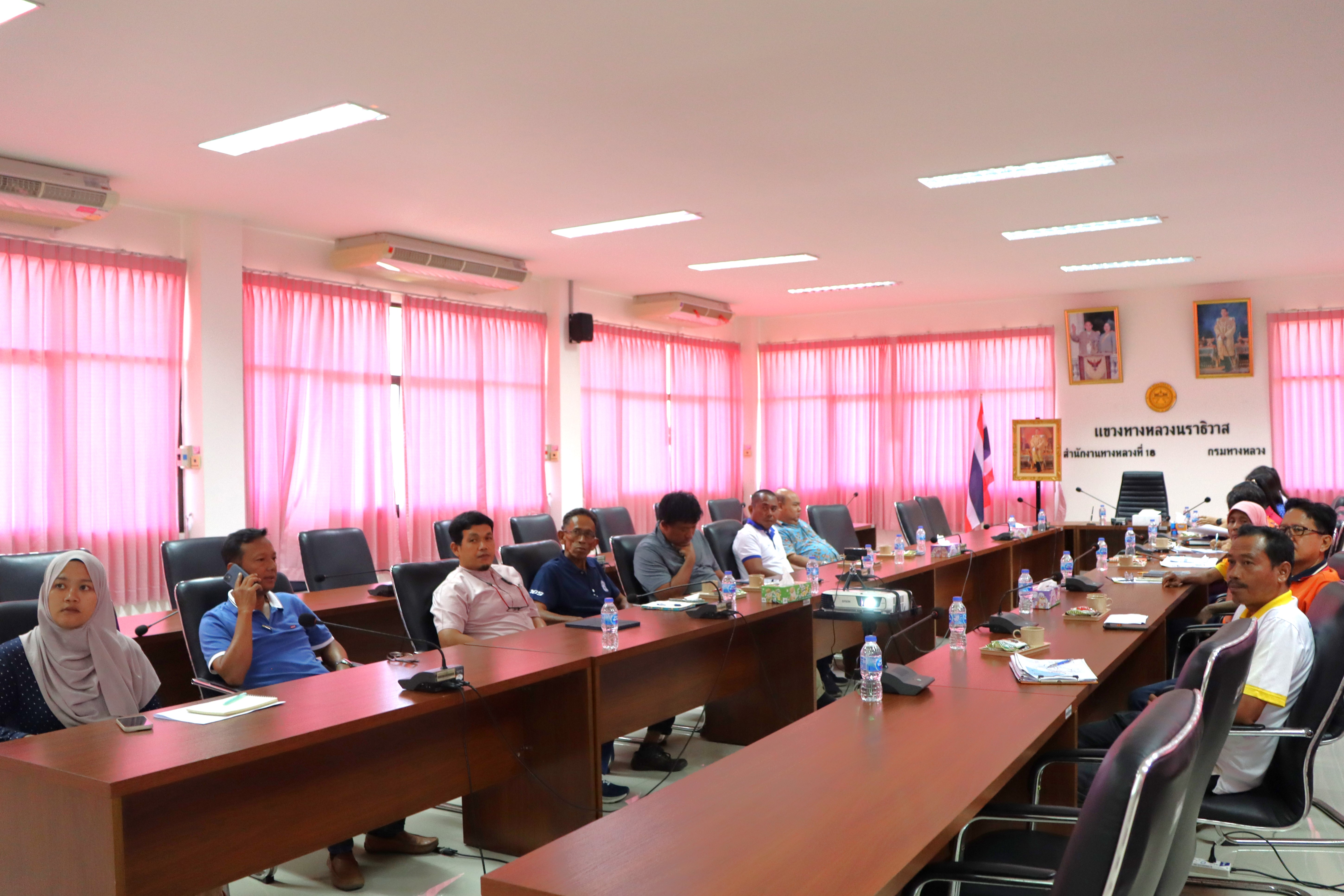 นายจอมปวีร์ จันทร์หิรัญ ผู้อำนวยการสำนักงานทางหลวงที่ 18 รักษาราชการแทน ผู้อำนวยการแขวงทางหลวงนราธิวาส มอบหมายให้นางอรัญญา เพ็ชรพูล รองผู้อำนวยการแขวงทางหลวงนราธิวาส (ฝ่ายบริหาร) หัวหน้าหมวดทางหลวง หัวหน้างาน หัวหน้าหน่วย ข้าราชการ และเจ้าหน้าที่ ร่วมประชุมสทล.18 และขท.ในสังกัดฯ ครั้งที่ 2/2567 ประจำเดือน เมษายน 2567 ผ่านระบบ Zoom Cloud Meeting ณ ห้องประชุมชั้น 3 แขวงทางหลวงนราธิวาส โดยมีนายจอมปวีร์ จันทร์หิรัญ ผู้อำนวยการสำนักงานทางหลวงที่ 18 เป็นประธานการประชุม