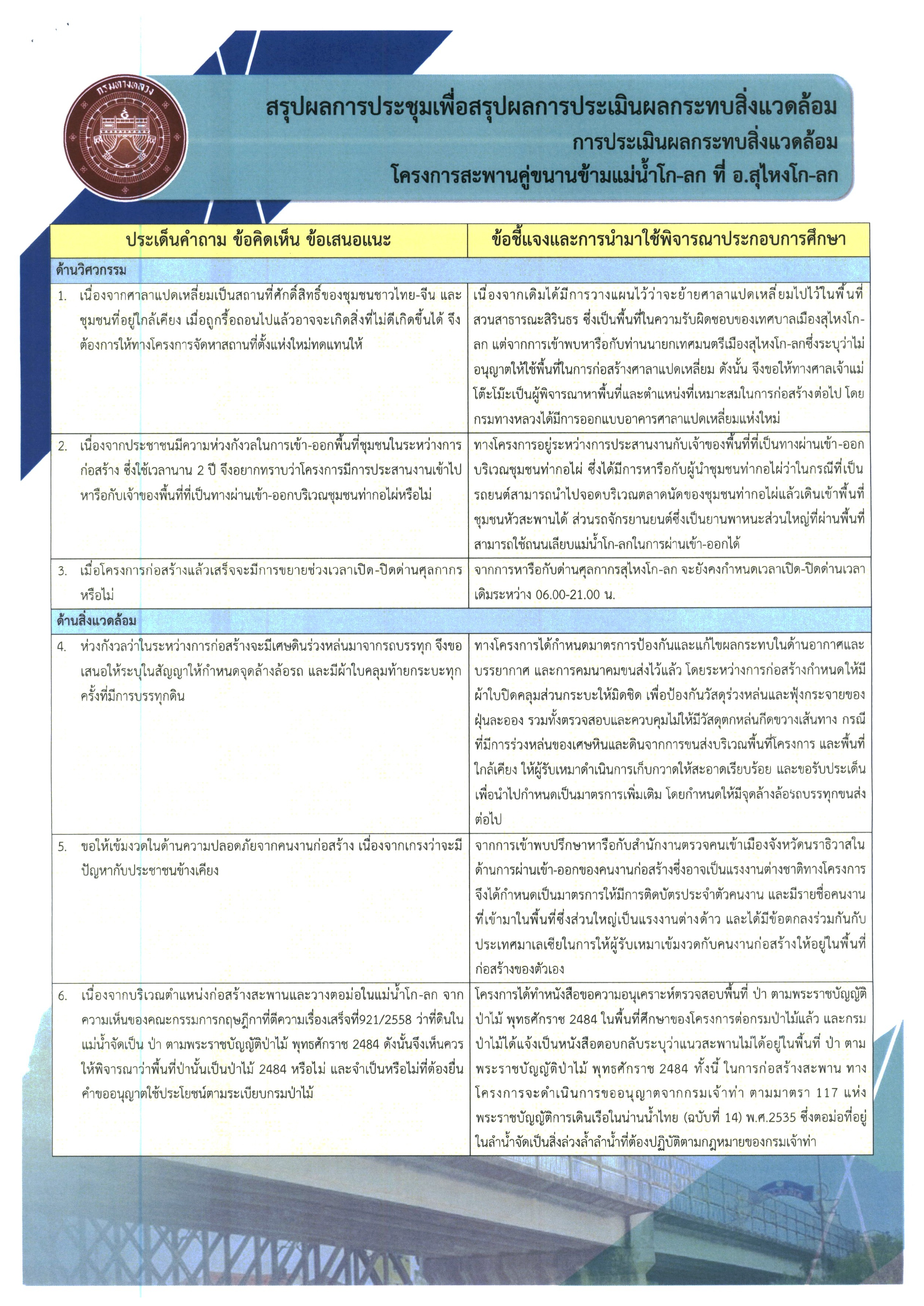 สรุปผลการประชุมเพื่อหารือแนวทางการประเมินผลกระทบสิ่งแวดล้อม การประเมินผลกระทบสิ่งแวดล้อม