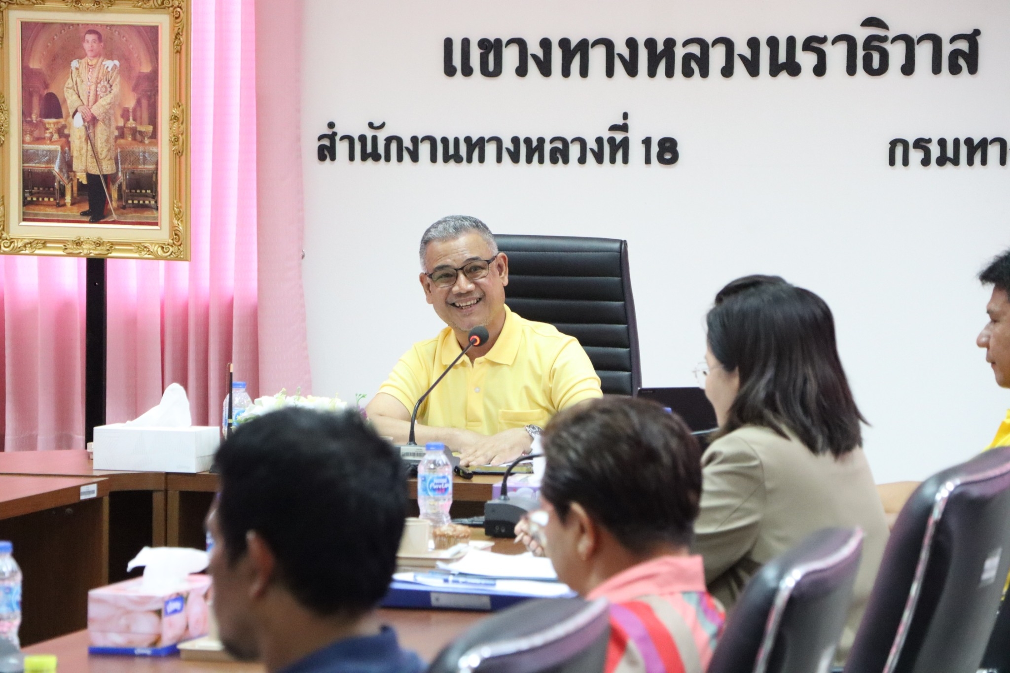 นายปฏิเวชวุฒิศักย์ สุขขี ผู้อำนวยการแขวงทางหลวงนราธิวาส พร้อมด้วยรองผู้อำนวยการแขวงทางหลวงนราธิวาส ฝ่ายปฏิบัติการ ฝ่ายวิศวกรรม ฝ่ายบริหาร ผู้อำนวยการหมวดทางหลวงอาวุโสนราธิวาส หัวหน้าหมวดทางหลวง หัวหน้างาน หัวหน้าหน่วย ข้าราชการและเจ้าหน้าที่ ร่วมประชุมเจ้าหน้าที่แขวงทางหลวงนราธิวาส ครั้งที่ 11/2567 ประจำเดือนสิงหาคม 2567 โดยติดตามผลการดำเนินงาน ปีงบประมาณ 2567 รายงานความก้าวหน้าการจัดซื้อจัดจ้าง พ.ร.บ. 2567 ติดตามความก้าวหน้าการบริหารงานสัญญา และรายงานแผน - ผล การปฏิบัติงาน และปัญหาอุปสรรค ณ ห้องประชุม ชั้น 3 แขวงทางหลวงนราธิวาส