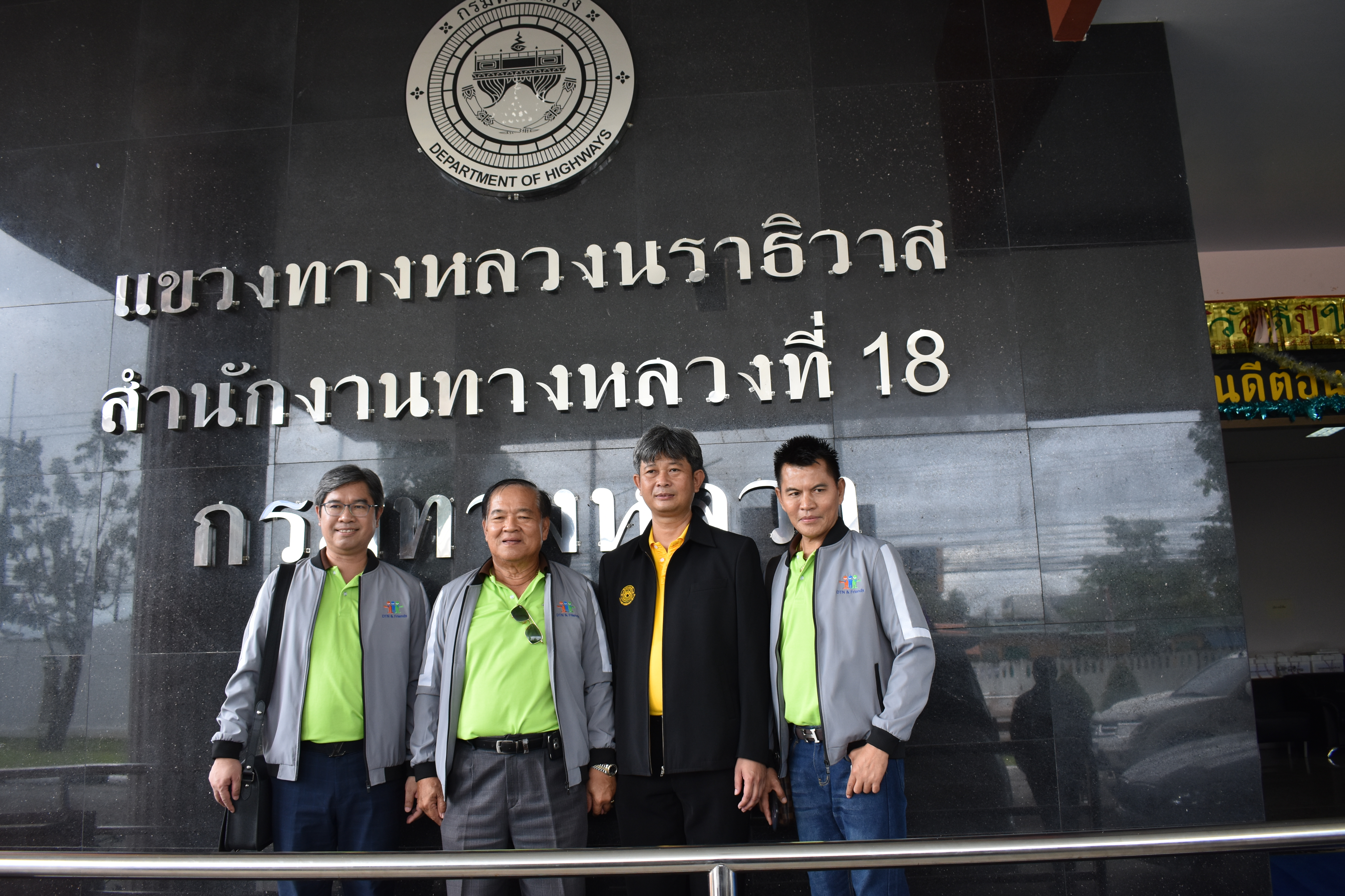 วันพฤหัสบดีที่ 17 มกราคม 2562 เวลา 9.30น. นายอานนท์ เหลืองบริบูรณ์ อธิบดีกรมทางหลวง พร้อมด้วยนายสิทธิชัย บุญสะอาด วิศวกรใหญ่ด้านวางแผนและวางโครงการก่อสร้าง กรมทางหลวงพร้อมคณะ ได้เดินทางมาตรวจเยี่ยม เพื่อสร้างขวํญและกำลังใจ ให้กับผู้ปฏิบัติงาน ณ แขวงทางหลวงนราธิวาส โดยการเดินทางมาตรวจราชการคราวนี้ ท่านอธิบดีได้ซักถามและชี้แนะการดำเนินงานต่างๆ โดยมีนายอรุณ เสน่ห์ ผู้อำนวยการสำนักงานทางหลวงที่ 18 นายคมกริช ตันตรัตนพงษ์ ผู้อำนวยการแขวงทางหลวงนราธิวาส และเจ้าหน้าที่แขวงทางหลวงนราธิวาส ร่วมให้การต้อนรับ