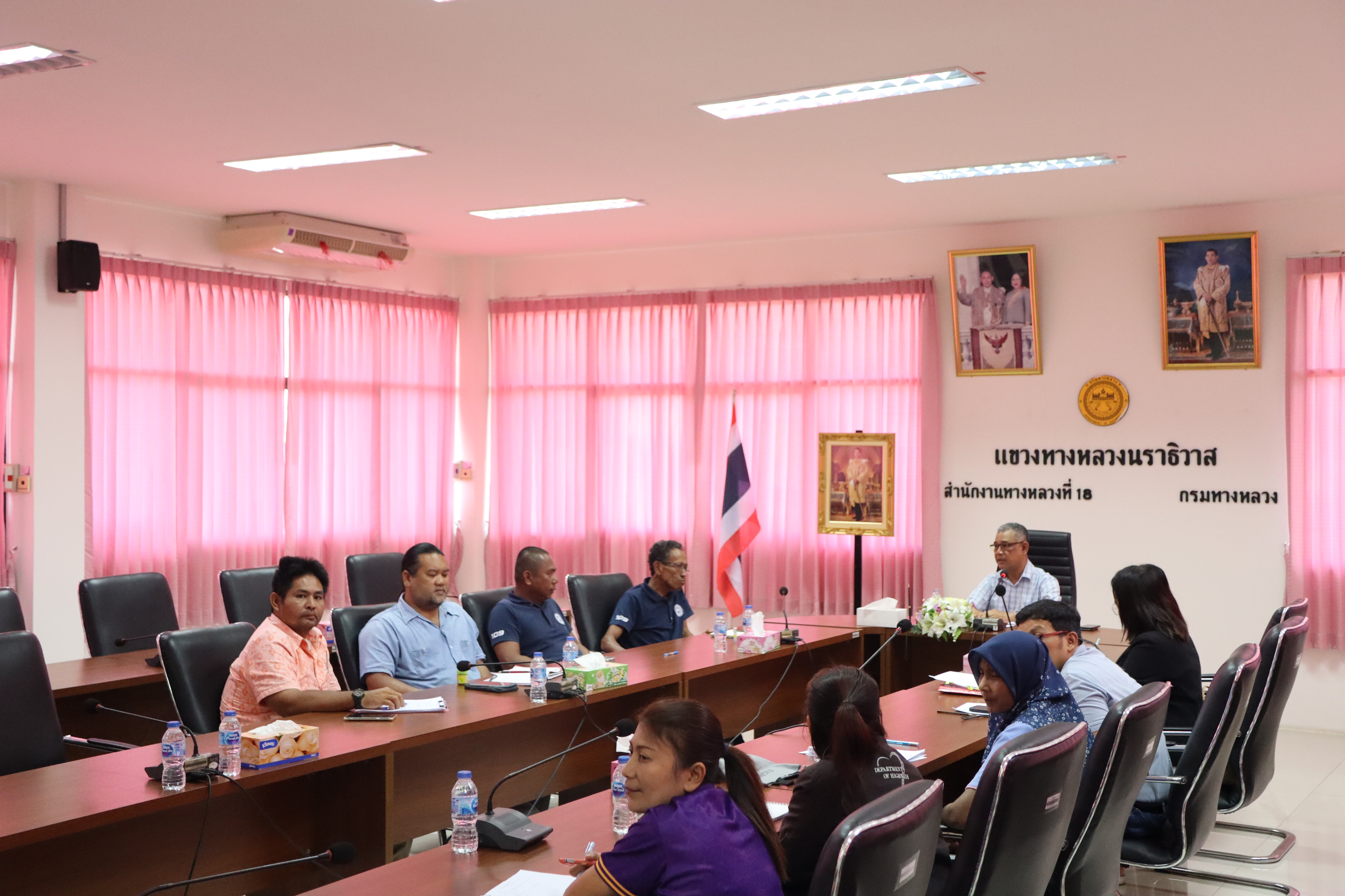 นายปฏิเวชวุฒิศักย์ สุขขี ผู้อำนวยการแขวงทางหลวงนราธิวาส พร้อมด้วยรองผู้อำนวยการแขวงทางหลวงนราธิวาส ฝ่ายบริหาร หัวหน้างาน หัวหน้าหมวดทางหลวง ข้าราชการ และเจ้าหน้าที่ ร่วมประชุมพิจารณาการดำเนินงานเพื่อแต่งตั้งคณะทำงานตรวจสอบและติดตามผลการดำเนินงานซ่อมแซมทรัพย์สินในเขตพื้นที่แขวงทางหลวงนราธิวาส และติดตามการปฏิบัติงานการรายงานอุบัติเหตุ ณ ห้องประชุม ชั้น 3 แขวงทางหลวงนราธิวาส