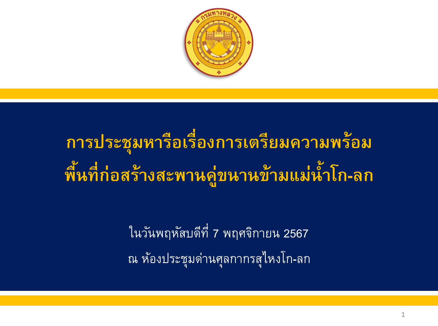 นายปฏิเวชวุฒิศักย์ สุขขี ผู้อำนวยการแขวงทางหลวงนราธิวาส พร้อมด้วยนายวีระชัย ปัญญาเถิง ผู้อำนวยการหมวดทางหลวงอาวุโสนราธิวาส นายศุภชาติ คงประเสริฐ หัวหน้าหมวดทางหลวงสุไหงโก-ลก และเจ้าหน้าที่ ร่วมกับศูนย์สร้างทางสงขลา ด่านศุลกากรสุไหงโก-ลก การรถไฟแห่งประเทศไทย โดยแขวงบำรุงทางตันหยงมัส เทศบาลเมืองสุไหงโก-ลก และสำนักงานทรัพยากรธรรมชาติและสิ่งแวดล้อมจังหวัดนราธิวาส ร่วมประชุมหารือเรื่องการเตรียมความพร้อมพื้นที่ก่อสร้างโครงการสะพานคู่ขนานข้ามแม่น้ำโก-ลก อ.สุไหงโก-ลก จ.นราธิวาส โดยหารือถึงการขออนุญาตใช้พื้นที่การรถไฟ และพื้นที่ด่านศุลกากรสุไหงโก-ลก แผนปฏิบัติการด้านสิ่งแวดล้อม การขุดล้อมย้ายต้นไม้ในพื้นที่ก่อสร้าง ร่วมถึงหารือการดำเนินการเกี่ยวแหล่งโบราณคดีและแหล่งศิลปกรรมบริเวณพื้นที่ดำเนินการก่อสร้าง
