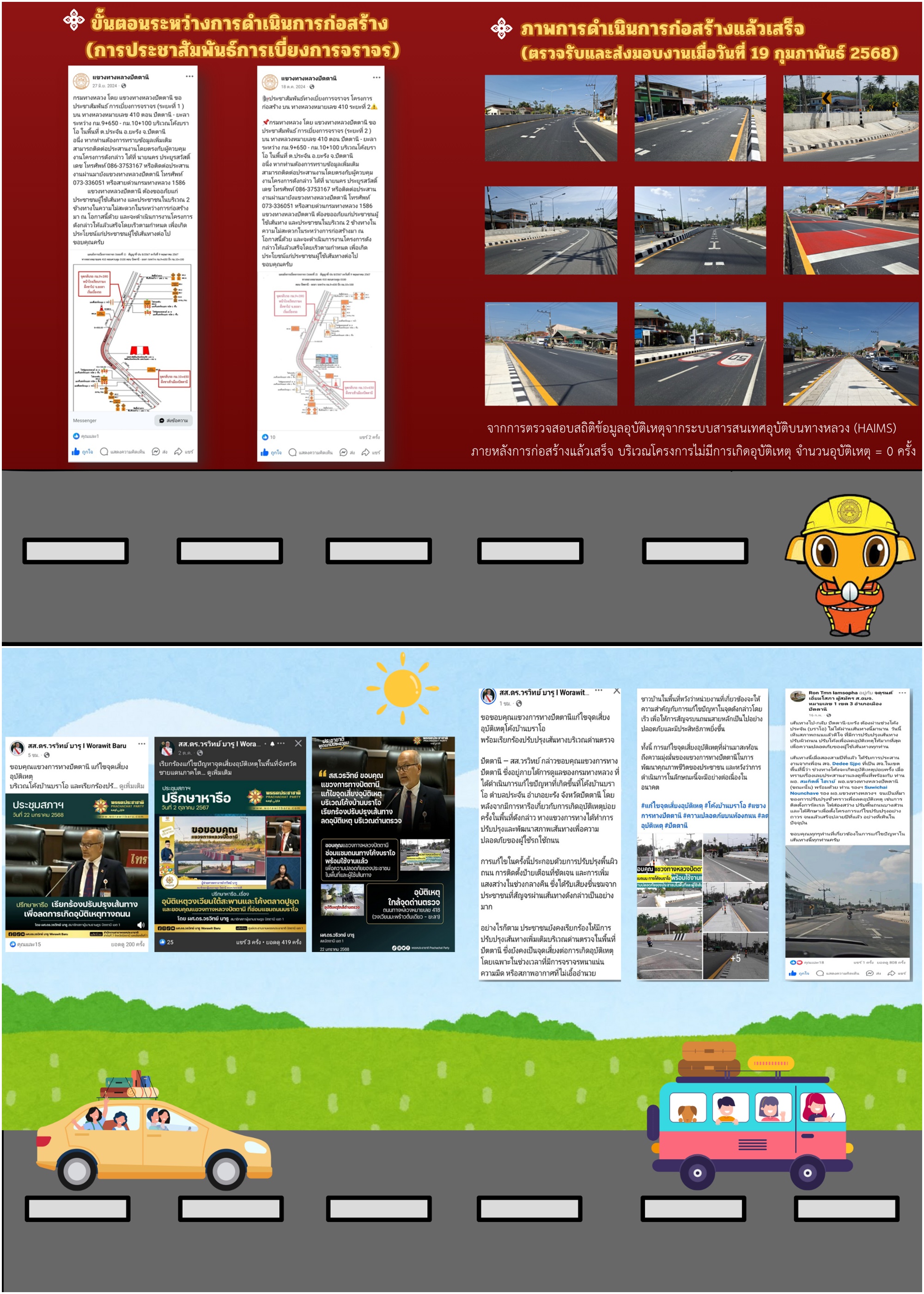 โครงการปรับปรุงจุดเสี่ยง และจุดอันตรายบนทางหลวง เพื่อแก้ไขปัญหาการเกิดอุบัติเหตุบนทางหลวง หมายเลข 410 ตอนควบคุม 0100 ตอน ปัตตานี - ยะลา ระหว่าง กม.9+650 - กม.10+100 (โค้งบราโอ)