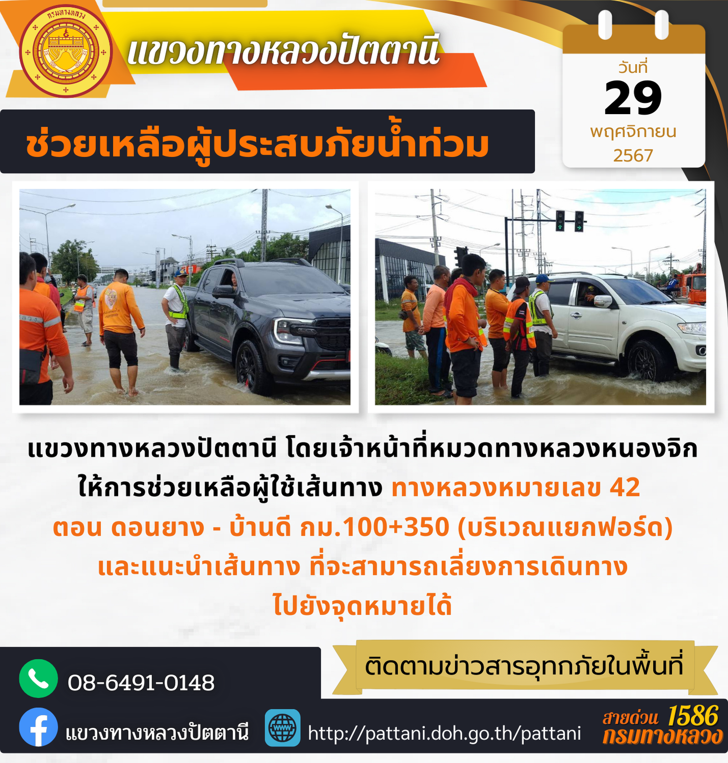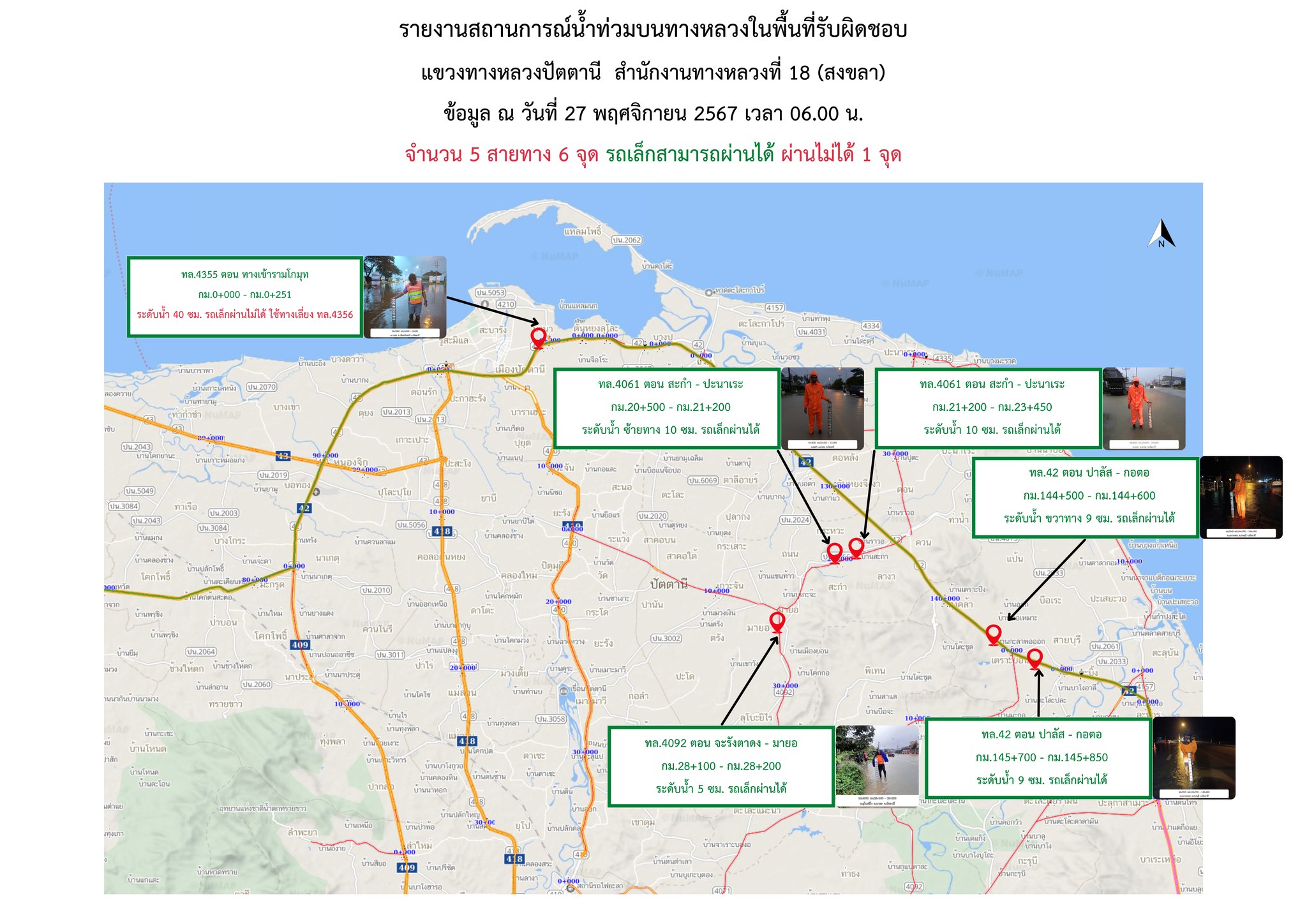 แขวงทางหลวงปัตตานี ขอรายงานสรุปสถานการณ์น้ำท่วมบนทางหลวงในพื้นที่