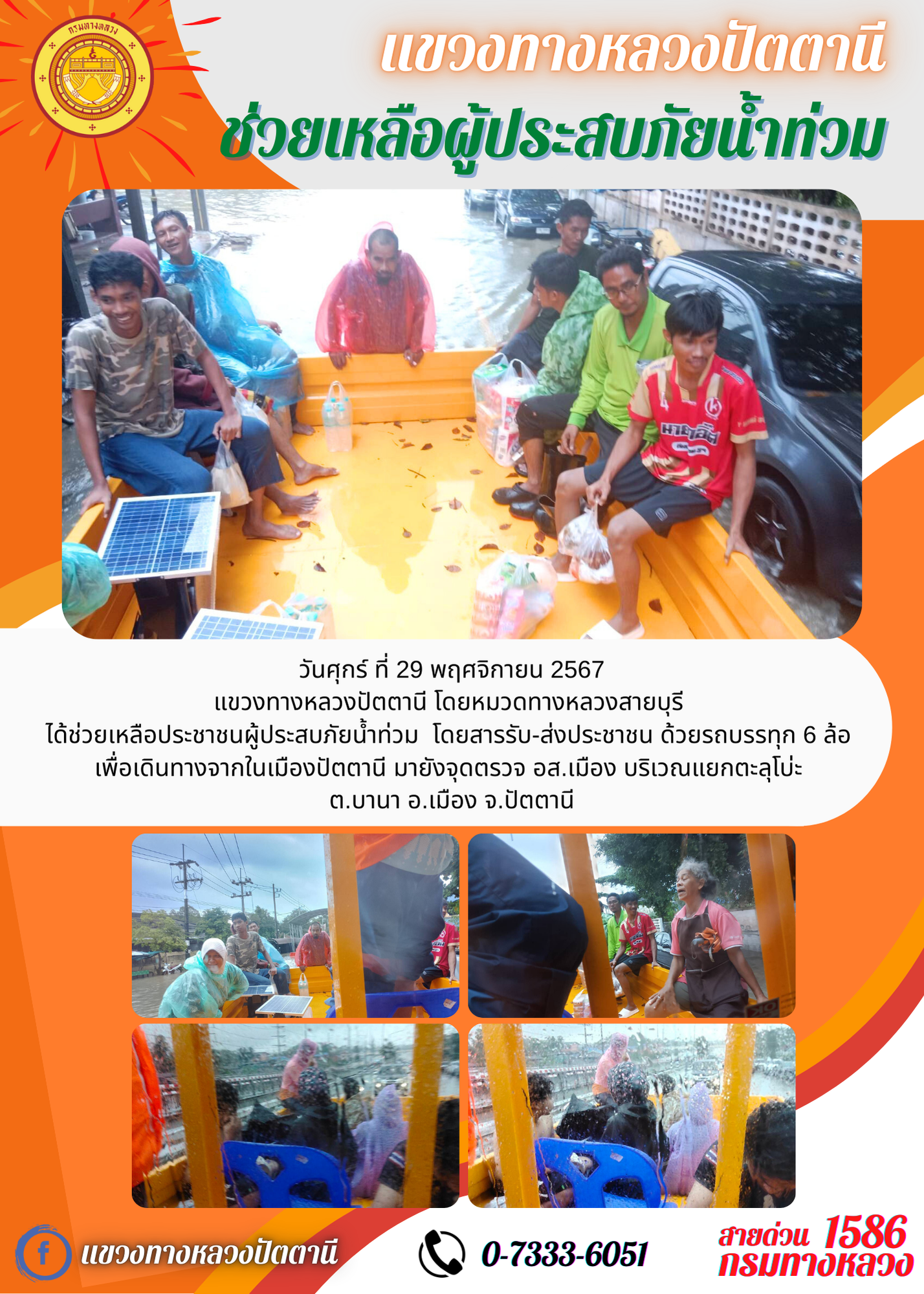 แขวงทางหลวงปัตตานี ให้ความช่วยเหลือผู้ประสบภัยน้ำท่วม