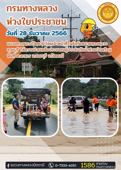 เข้าดำเนินการเร่งแก้ไข ซ่อมแซม และฟื้นฟูทางหลวงเบื้องต้น ภายหลังทางหลวงได้รับผลกระทบจนได้รับความเสียหายจากการเกิดอุทกภัย
