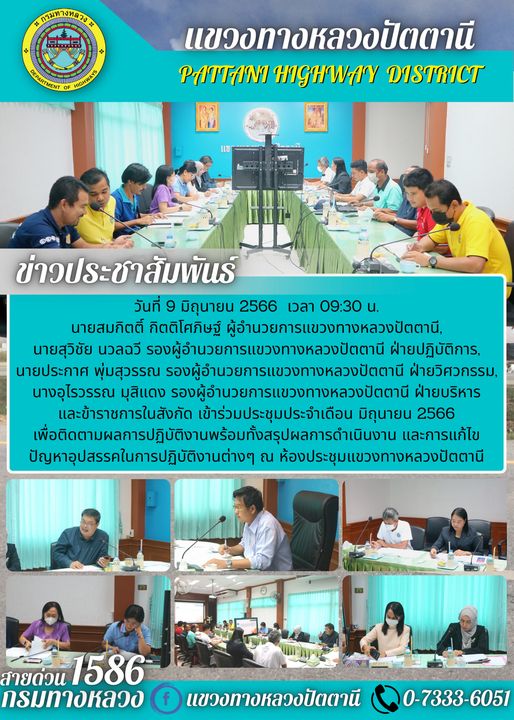 ประชุมประจำเดือน มิถุนายน 2566 เพื่อติดตามผลการปฏิบัติงานพร้อมทั้งสรุปผลการดำเนินงาน และการแก้ไขปัญหาอุปสรรคในการปฏิบัติงานต่างๆ