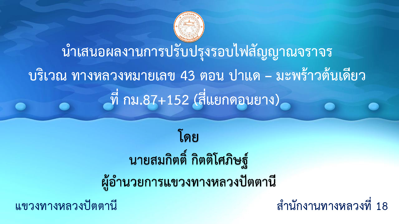การปรับปรุงรอบสัญญาณไฟจราจรเพื่อเพิ่มประสิทธิภาพการจราจรบริเวณทางแยก ทางหลวงหมายเลข 43 ตอน ปาแด - มะพร้าวต้นเดียว บริเวณแยกดอนยาง ที่ กม.87+152 อำเภอหนองจิก จังหวัดปัตตานี