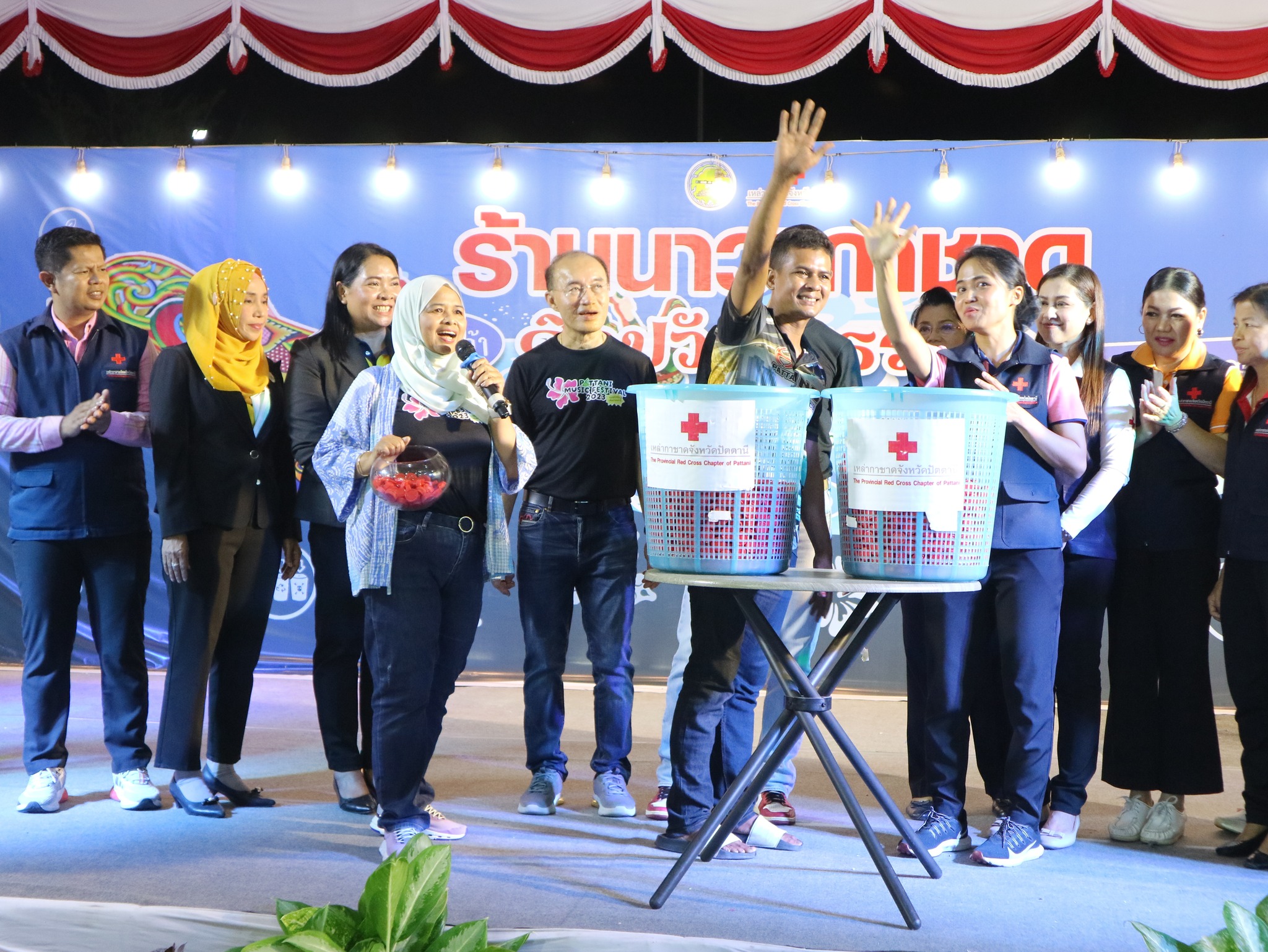 และนางธันย์ภัคนันท์ อุสมันบาฮา ร่วมปฏิบัติงานและมอบรางวัลภายในร้านนาวากาชาด จังหวัดปัตตานี