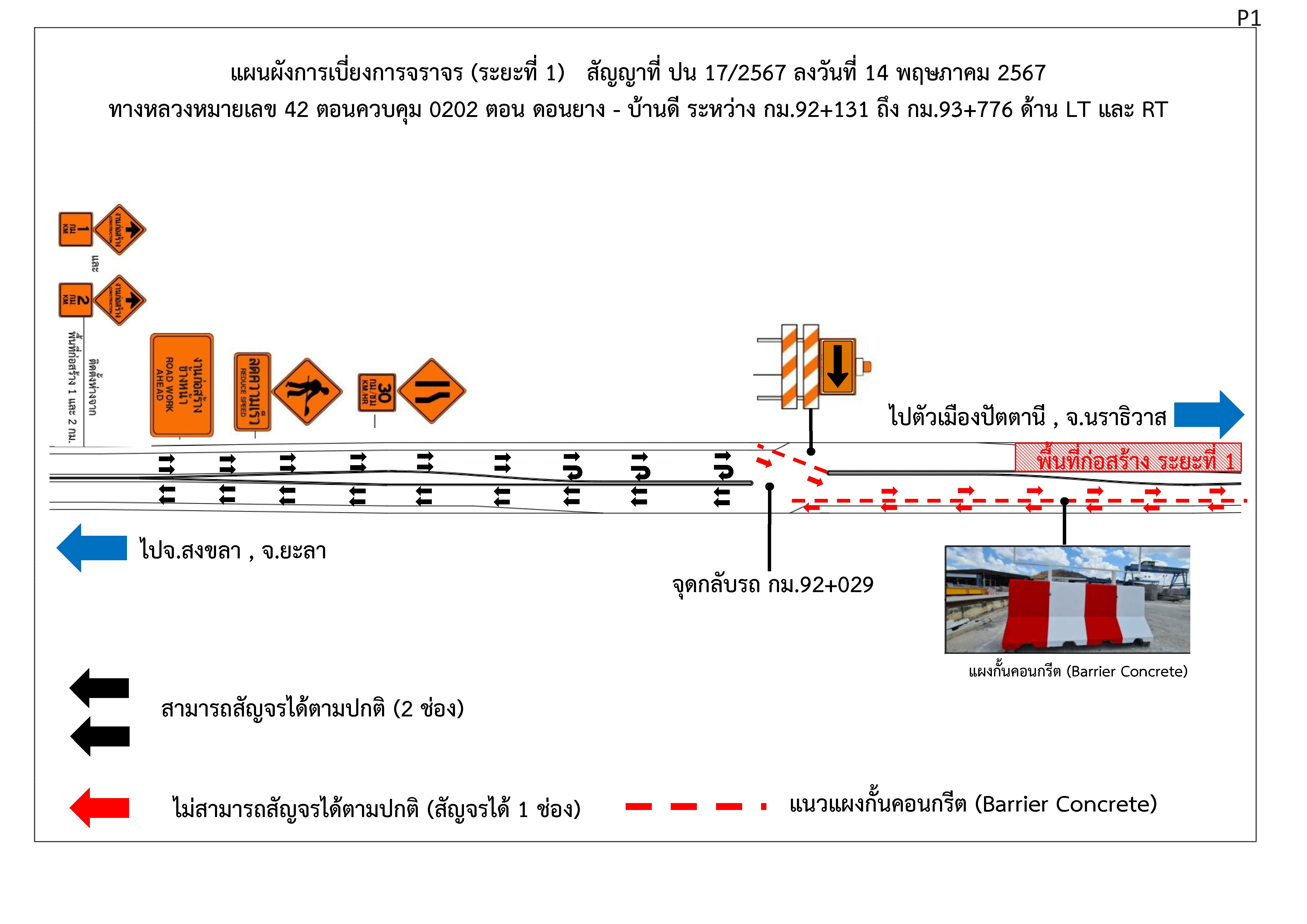 แขวงทางหลวงปัตตานี จึงขอประชาสัมพันธ์การปิดเบี่ยงการจราจรในระยะที่ 1 ให้กับประชาชน และชุมชนท้องถิ่นรับทราบ รายละเอียดตามรูปภาพแผนผังการเบี่ยงการจราจรฯ (ระยะที่ 1) แนบ ดังนี้