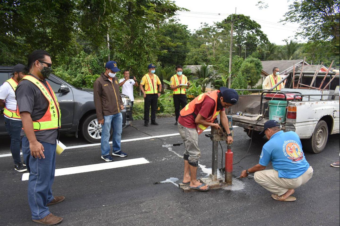 นายอำนวยพร ศรีอิสรานุสรณ์ รองผู้อำนวยการสำนักงานทางหลวงที่ 18 นายคมกริช ตันตรัตนพงษ์ ผู้อำนวยการแขวงทางหลวงนราธิวาส พร้อมด้วยคณะกรรมการตรวจรับพัสดุ และผู้ควบคุมงาน ร่วมตรวจรับงานจ้างเหมาเสริมผิวแอสฟัลต์ ทางหลวงหมายเลข 42 ตอนควบคุม 0301 ตอน กอตอ - ปูต๊ะ ระหว่างกม.188+261 - กม.189+050 (เป็นตอนๆ) ระยะทาง 0.789 กม. ปริมาณงาน 21,080 ตร.ม. ขยายระยะดำเนินการ 73.00 ม. ระหว่าง กม.188+275 - กม.189+137 ระยะทาง 0.862 กม. ซึ่งผู้รับจ้างดำเนินการแล้วเสร็จตามสัญญาเลขที่ นธ.16/2563 ลงวันที่ 28 เมษายน 2563