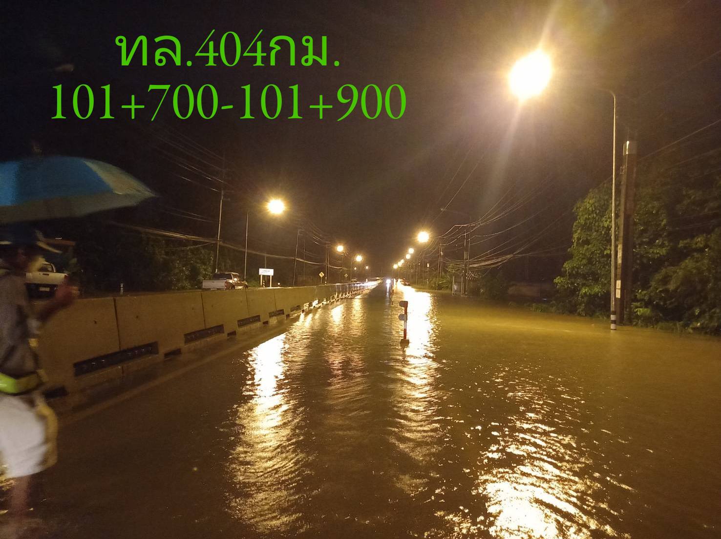 รายงานน้ำท่วม ทางหลวงหมายเลข 404 ตอน ละงู - ฉลุง ช่วง กม.101+700-กม.101+900