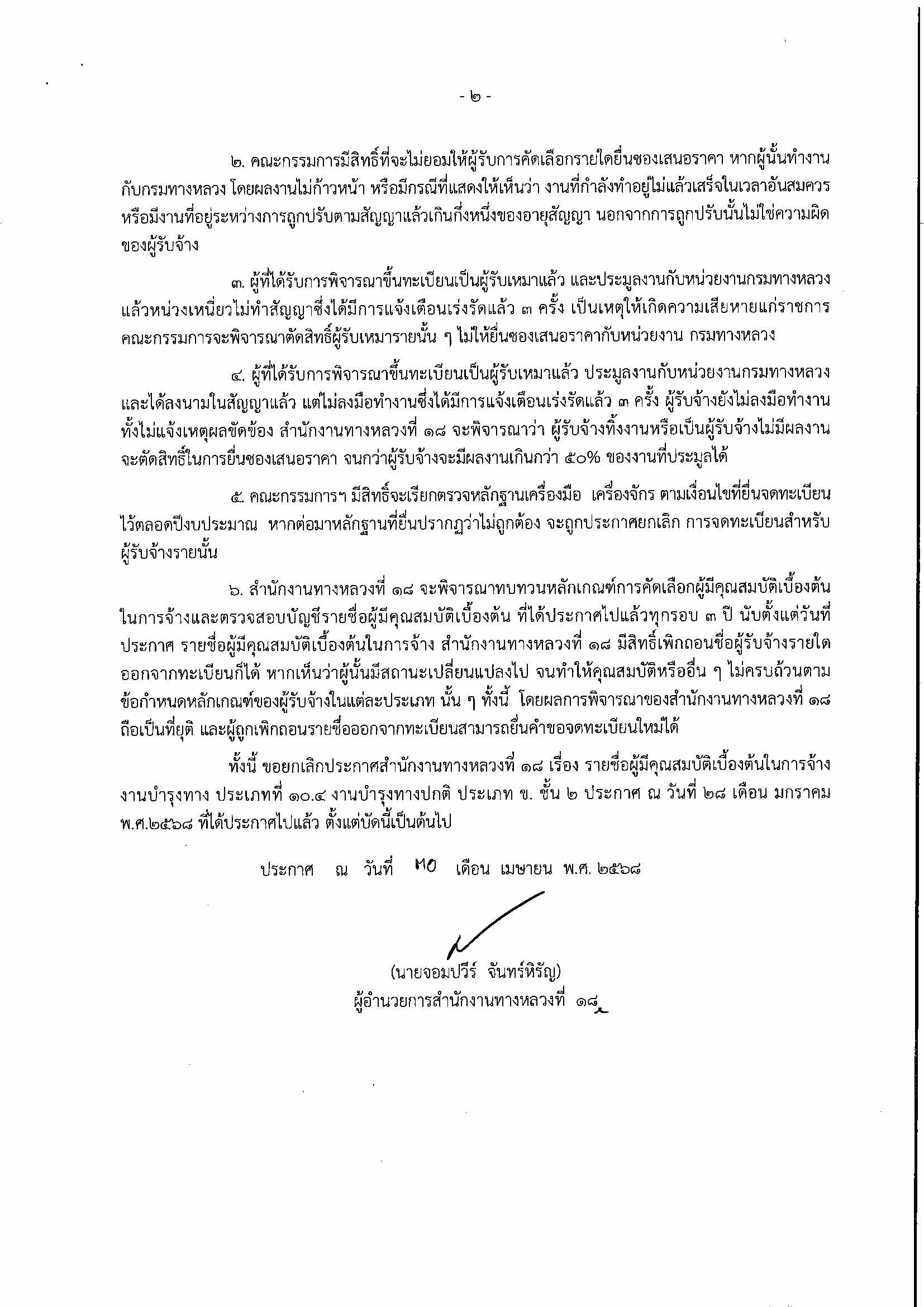 ประกาศรายชื่อ ผู้มีคุณสมบัติเบื้องต้นในการจ้างงานบำรุงทาง -ประเภทที่ 10.4 งานบำรุงทางปกติ ประเภท ข. ชั้น 2
