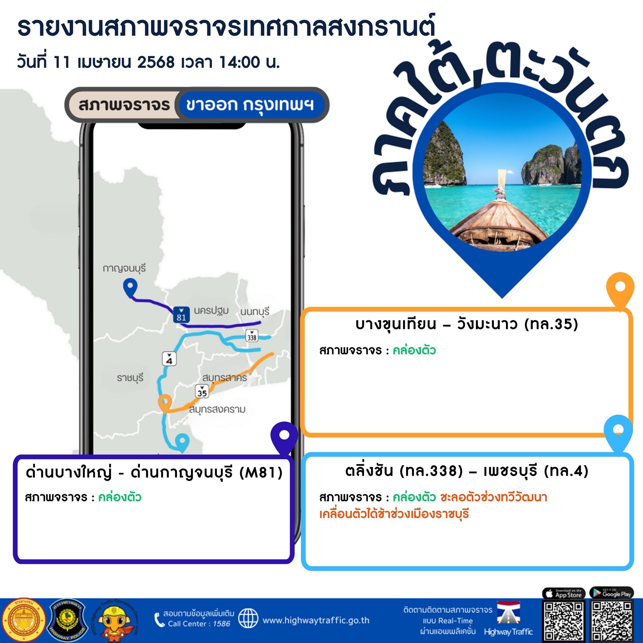 แอปดูรถติด Highway Traffic เป็นแอปพลิเคชันที่พัฒนา โดยกรมทางหลวง กระทรวงคมนาคม มีประโยชน์อย่างมากสำหรับผู้ใช้ที่ต้องการเช็คสภาพจราจรบนทางหลวงโดย เฉพาะช่วงเทศกาลสงกรานต์ปีนี้ สามารถเช็คได้แบบเรียลไทม์ จะเลือกเช็คเส้นทางจราจรเป็นแบบแผนที่ หรือผ่านภาพจากกล้องวงจรปิด (CCTV) กว่า 100 ตัว บนถนนทางหลวงสายหลักกระจายอยู่ทั่วทั้งประเทศ พร้อมบอก ความเร็วเฉลี่ยบนถนนเส้นนั้น นอกจากนี้คุณยังสามารถเช็คจุดบริการทางหลวง จุดจอดแวะพักระหว่างทาง เพื่อให้ผู้ใช้รถบนทางหลวงได้รับความสะดวกมากที่สุด