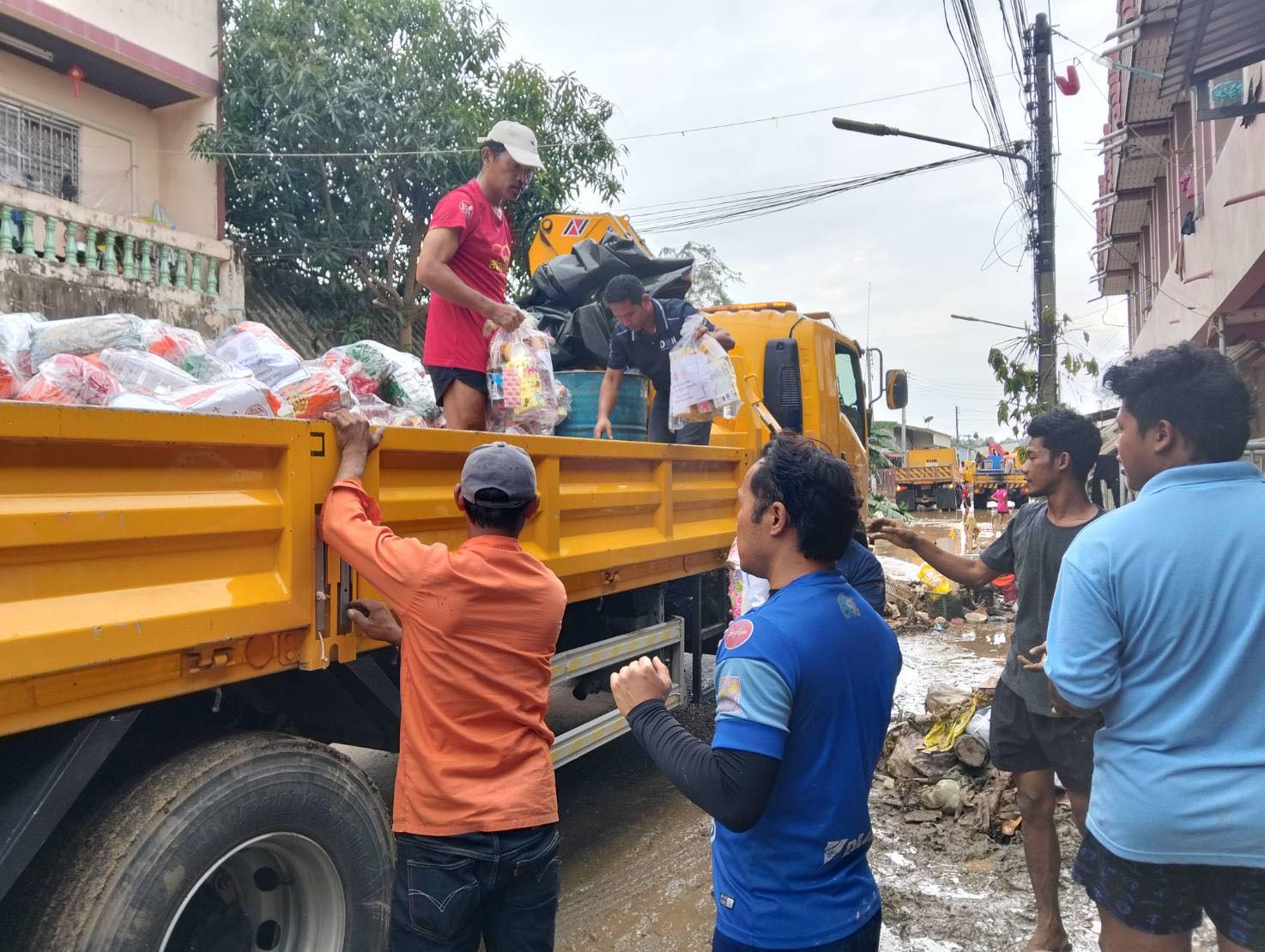 กรมทางหลวง "จิตอาสาคมนาคม“ โดยรถคาราวาน ได้ลงพื้นที่แจกจ่ายถุงยังชีพพร้อมน้ำดื่มให้กับประชาชนผู้ประสบอุทกภัยในพื้นที่น้ำท่วมในตัวเมือง อ.หาดใหญ่