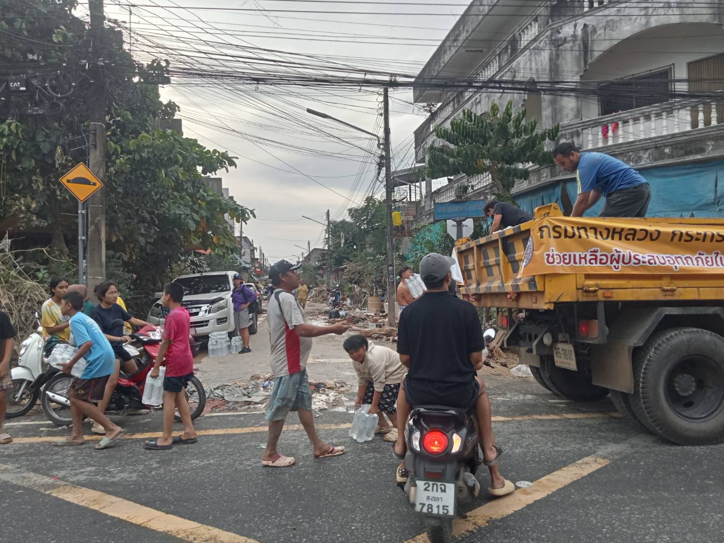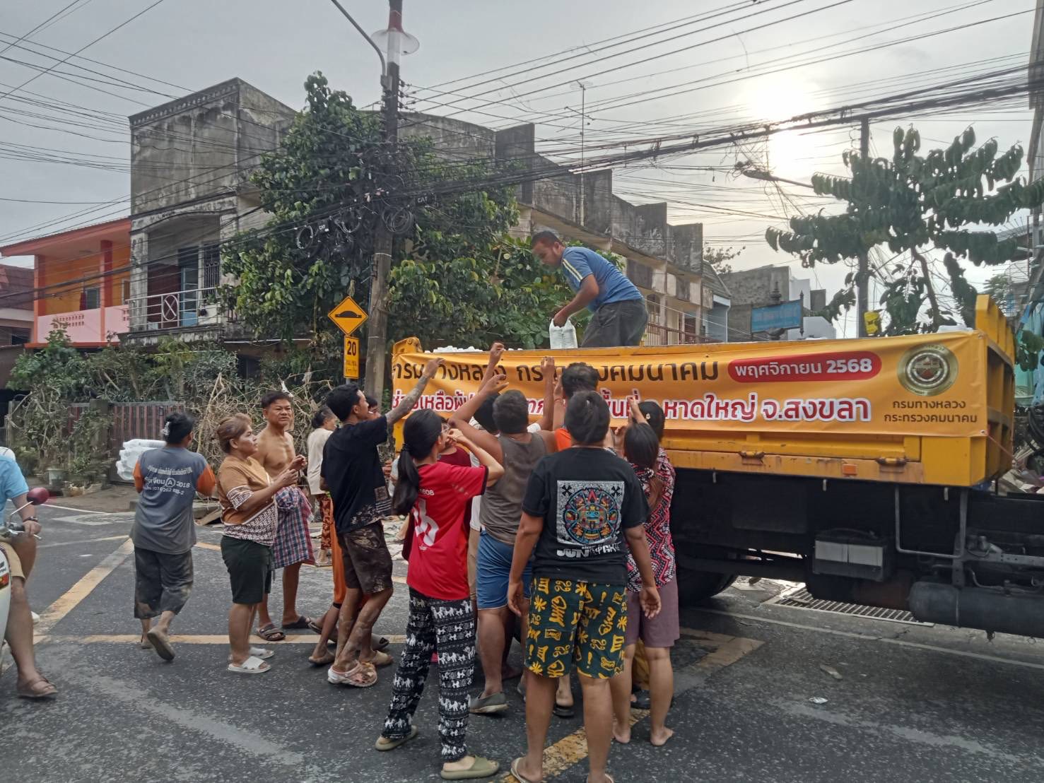 กรมทางหลวง "จิตอาสาคมนาคม“ โดยรถคาราวาน ได้ลงพื้นที่แจกจ่ายถุงยังชีพพร้อมน้ำดื่มให้กับประชาชนผู้ประสบอุทกภัยในพื้นที่น้ำท่วมในตัวเมือง อ.หาดใหญ่