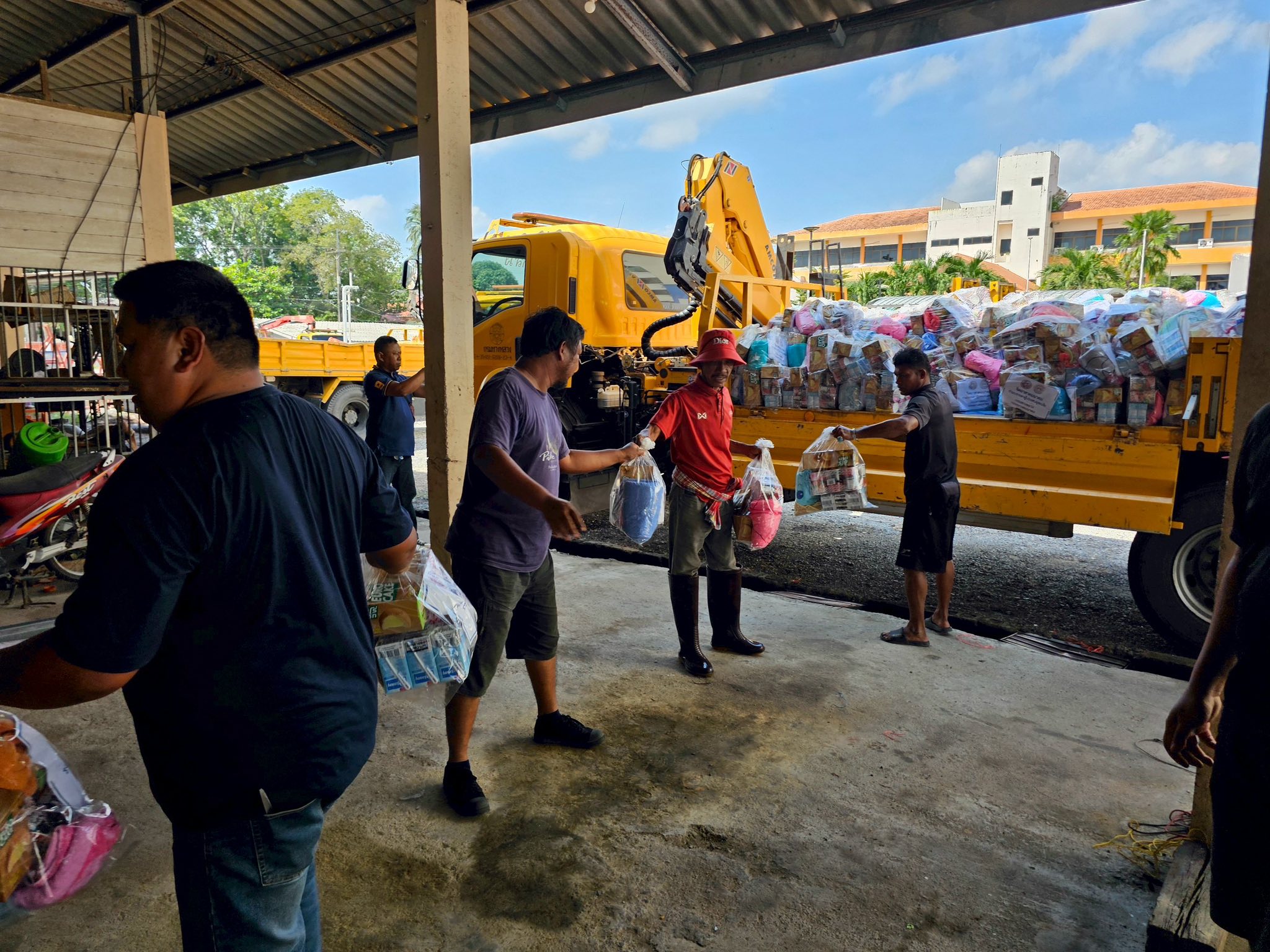กรมทางหลวง โดยเจ้าหน้าที่ฯ ได้รับภารกิจส่งถุงยังชีพ จำนวน 1 คันรถ ไปยังแขวงทางหลวงพัทลุง