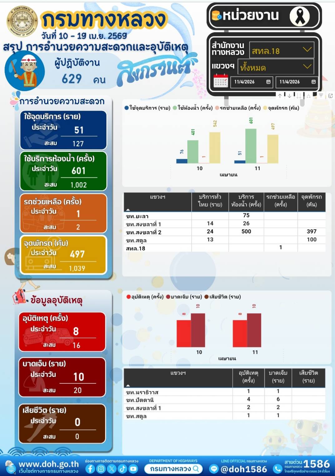 รายงานสรุปการเกิดอุบัติเหตุและการให้บริการประชาชน ช่วงเทศกาลสงกรานต์ 2569 ระหว่างวันที่ 10-15 เมษายน 2569