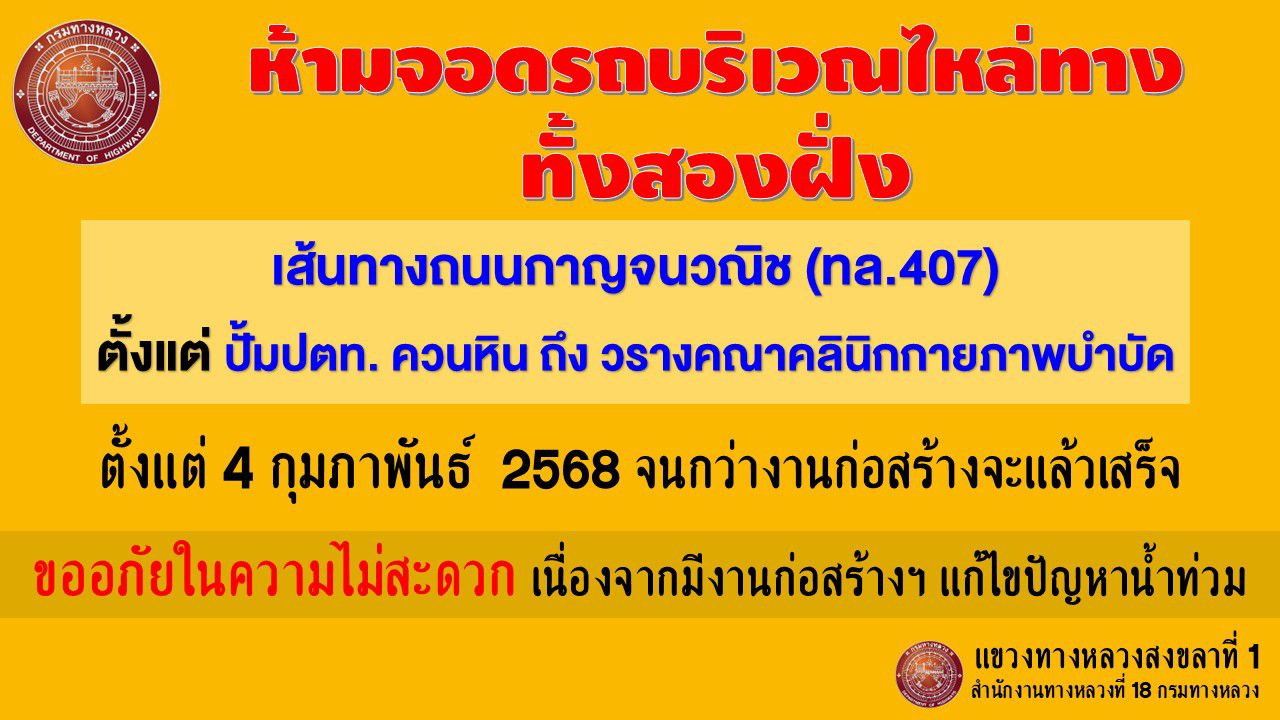 ห้ามจอดรถไหล่ทาง ทล.407
