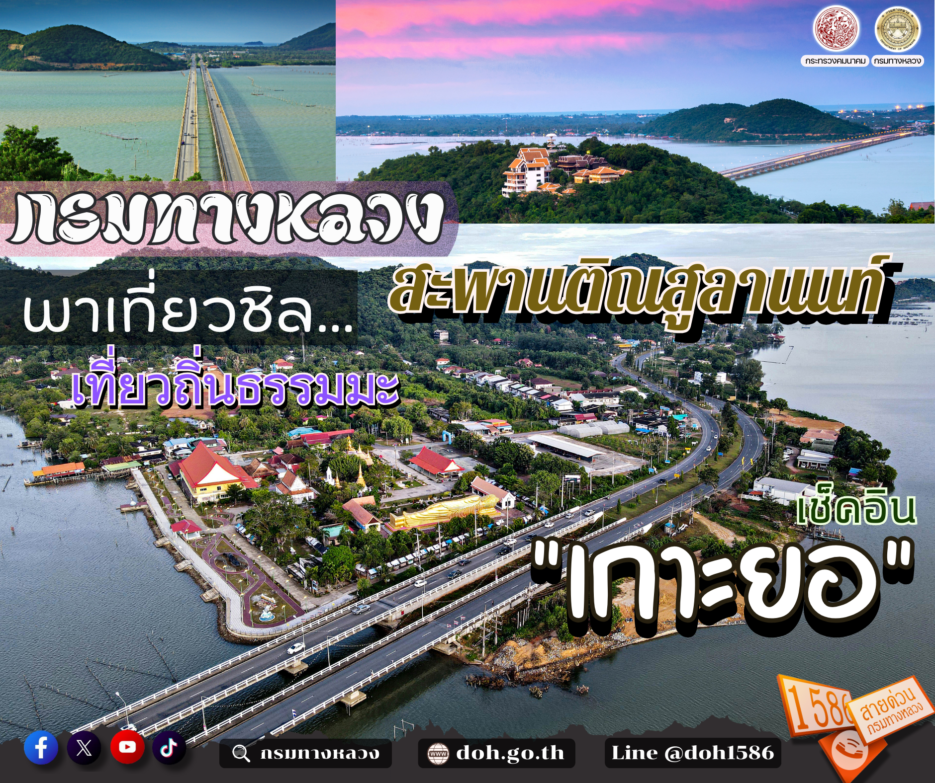 กรมทางหลวง พาเที่ยวชิล...สะพานติณสูลานนท์ ชมพระอาทิตย์ตกดิน เที่ยวถิ่นธรรมมะ เช็คอิน “เกาะยอ”