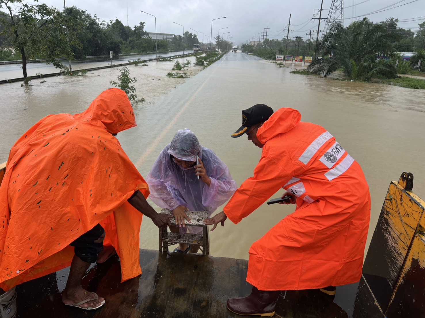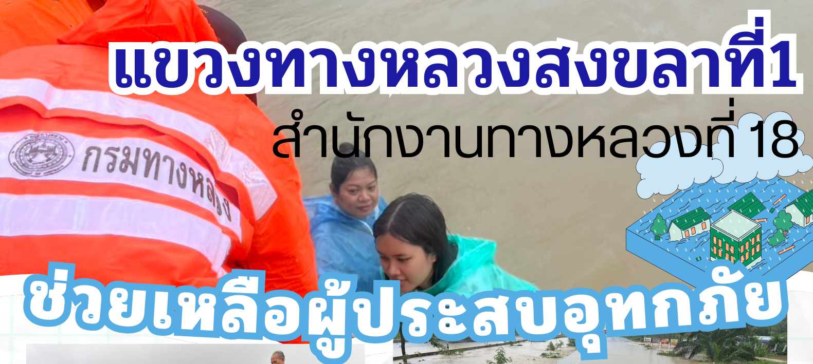 แขวงทางหลวงสงขลาที่ 1 ดำเนินการช่วยเหลือประชาชนในพื้นที่ ทางหลวงหมายเลข 4 ตอน เนินพิชัย - คลองหวะ บริเวณหน้าทางเข้า มหาวิทยาลัยหาดใหญ่ เพื่อให้สัญจรข้ามผ่านจุดบริเวณที่น้ำท่วมสูงได้ (เนื่องจากรถเล็กไม่สามารถผ่านได้)