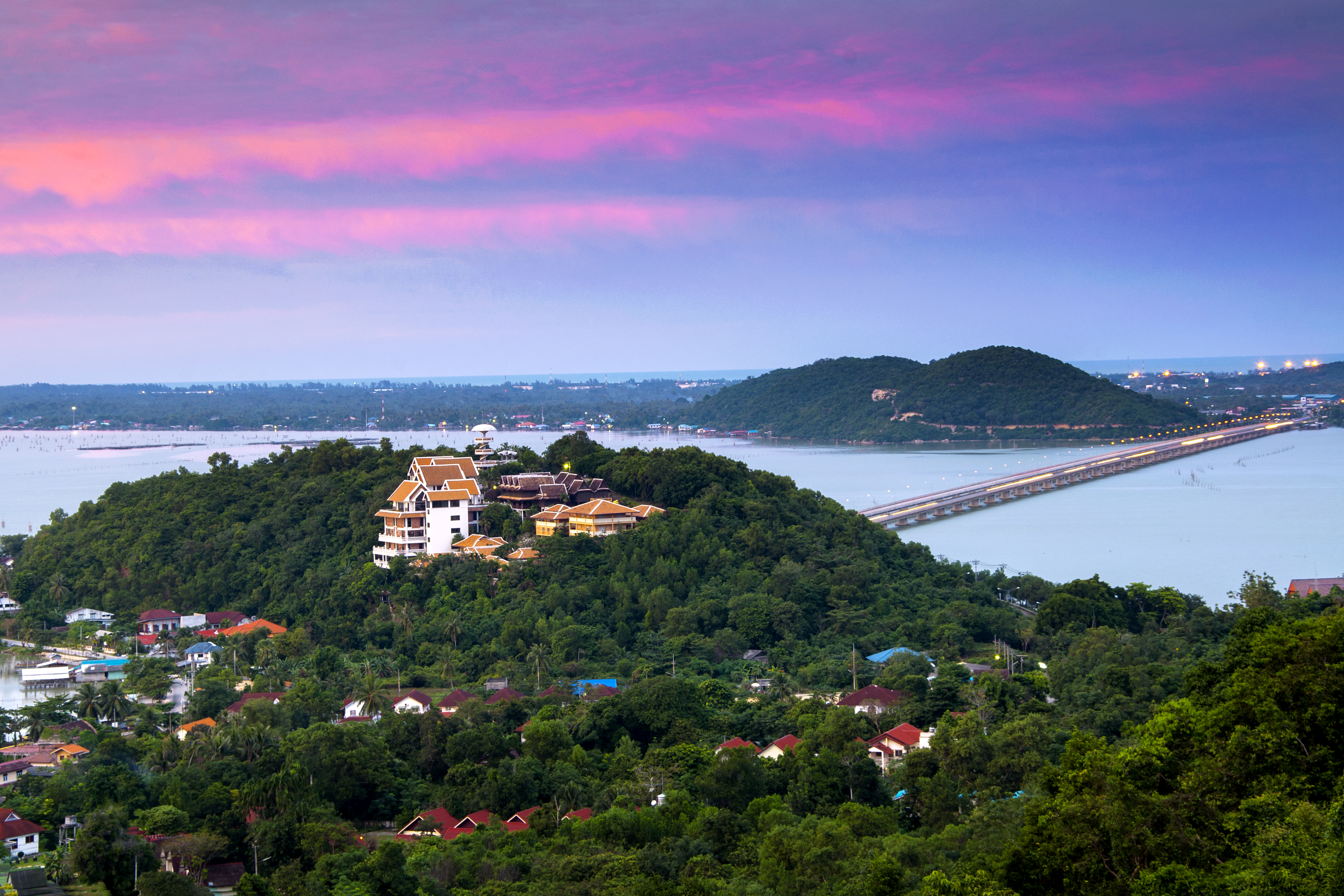 กรมทางหลวง พาเที่ยวชิล...สะพานติณสูลานนท์ ชมพระอาทิตย์ตกดิน เที่ยวถิ่นธรรมมะ เช็คอิน “เกาะยอ”
